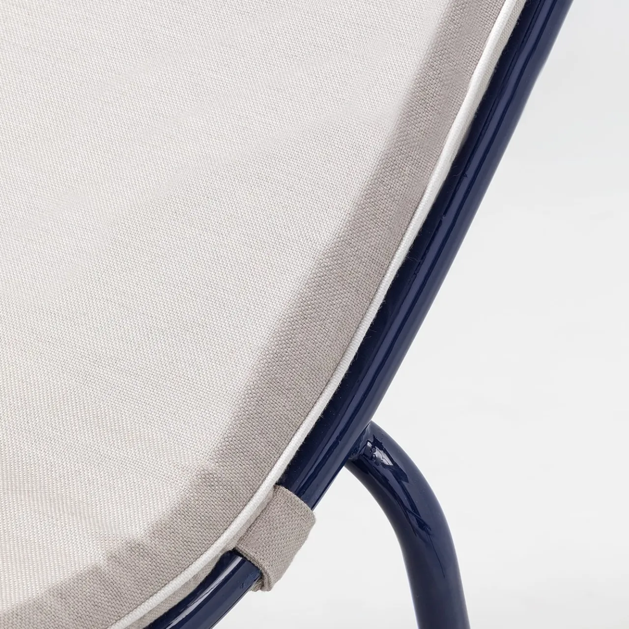 Questo esclusivo lettino della Sunshine Collection è stato progettato all’insegna del minimalismo. La struttura cilindrica in metallo verniciato in blu cobalto (RAL 5013) crea un fresco impatto cromatico, mentre il tessuto leggero (Panama CAT D Marble 1322) che avvolge il materassino assicura un comfort duraturo. Soluzione perfetta per prendere il sole in piscina o in terrazza, è disponibile anche nella versione con braccioli; per maggiori informazioni, contattare il Concierge.