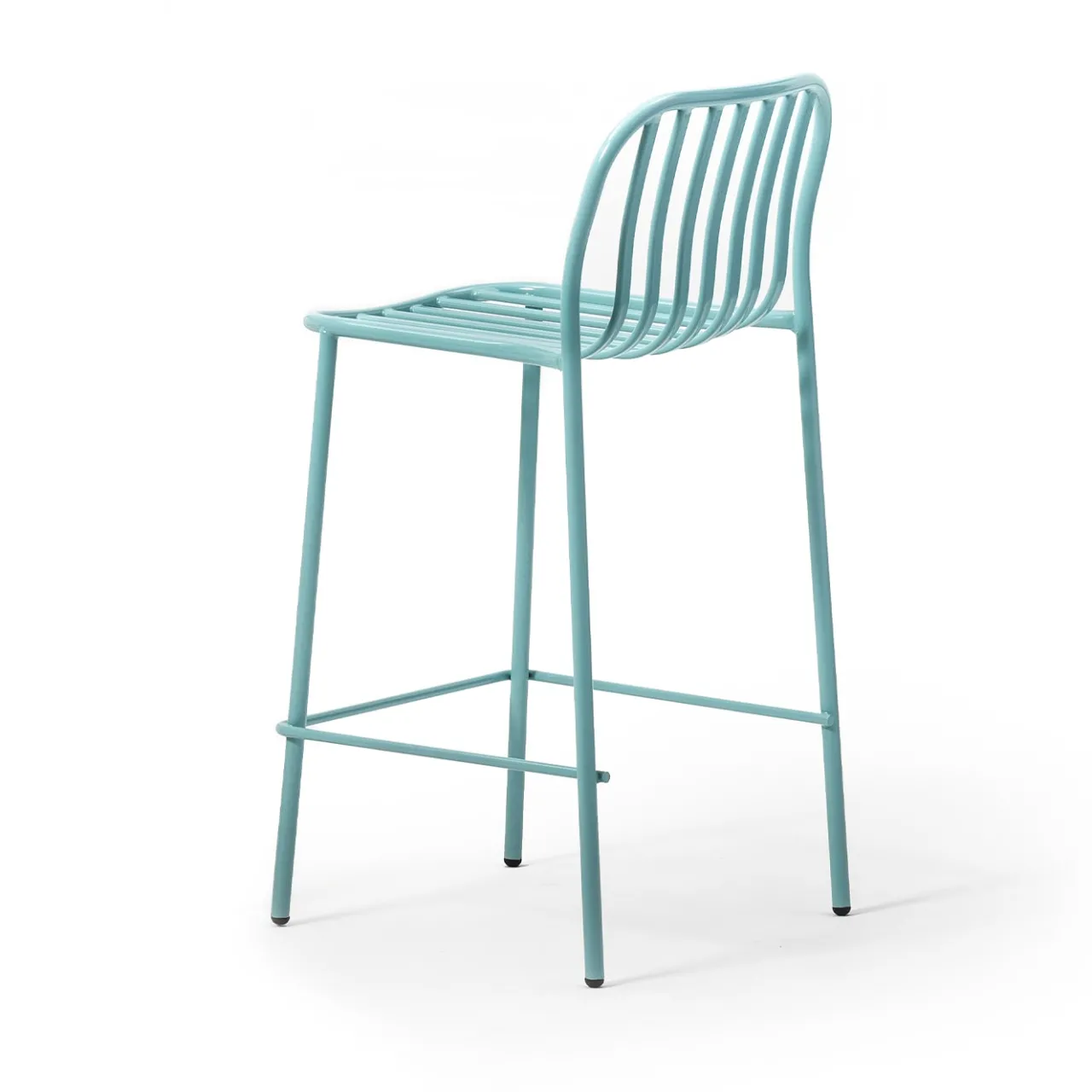 Proposto in una brillante finitura turchese (Ral 6034) che richiama le sognanti acque tropicali, la solida struttura cilindrica in metallo di questo sgabello da bar garantisce leggerezza e freschezza. Lo schienale è composto da barre multiple, i cui contorni arrotondati ammorbidiscono una silhouette generale altrimenti troppo rigorosa. Per informazioni sulle opzioni di personalizzazione, sulle versioni per esterni/interni e sul cuscino di seduta opzionale, rivolgersi al Concierge.
