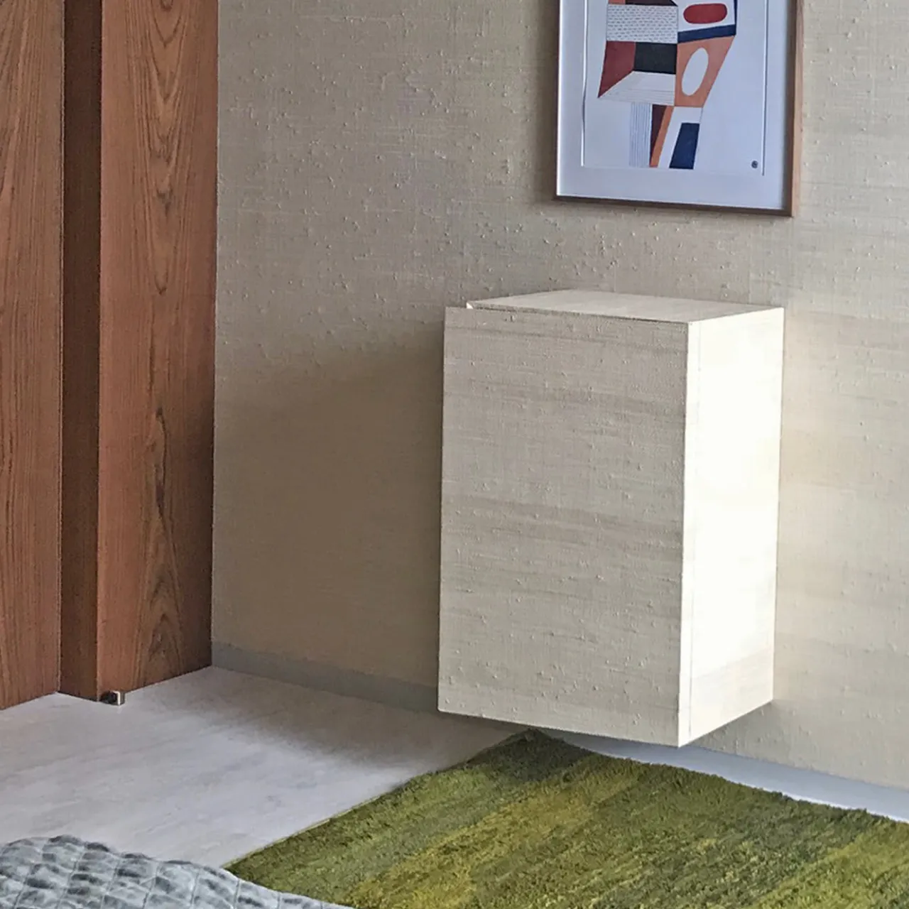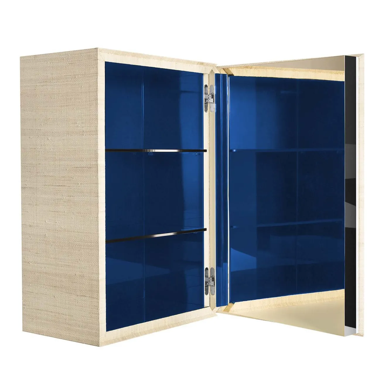 Questo funzionale complemento d’arredo, disegnato dall’architetto italiano Davide Rizzo in collaborazione con AVD, si farà notare in ogni ambiente grazie alla combinazione di materiali di lusso e all’estetica elegante. Caratterizzato da un ampio scomparto rivestito di specchi blu e da due ripiani, il telaio rettangolare in rafia naturale è dotato di un’anta singola accentuata da un inserto triangolare in metallo rifinito in nichel nero intorno al telaio che crea l’effetto di una porta leggermente aperta. Ricco di fascino chic, questo pezzo è l’accento perfetto per aggiungere uno stile trendy senza sforzo e un tocco curato a qualsiasi casa.