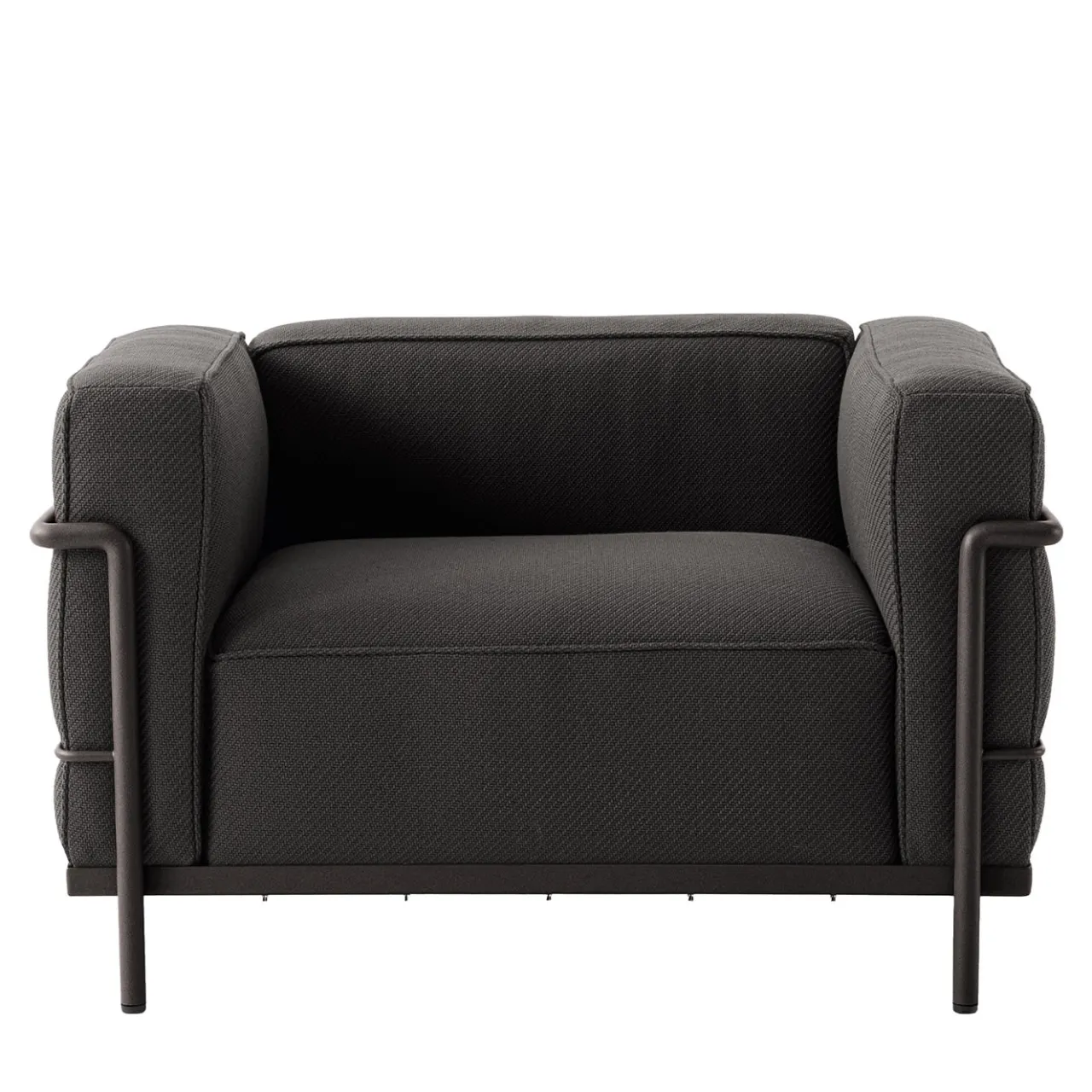 La poltrona 3 Fauteuil Grand Confort, Grand Modèle esemplifica l’architettura modernista, separando la struttura metallica dal rivestimento, come una struttura portante. Quattro cuscini neri poggiano su una struttura in acciaio verniciato. Cassina, in collaborazione con gli eredi di Charlotte Perriand e la Fondation Le Corbusier, ha reinterpretato questa icona. Questa versione per esterni presenta una struttura in acciaio inossidabile e cuscini in tela idrorepellente, disponibili in altri colori. Contattare il Concierge per i dettagli.