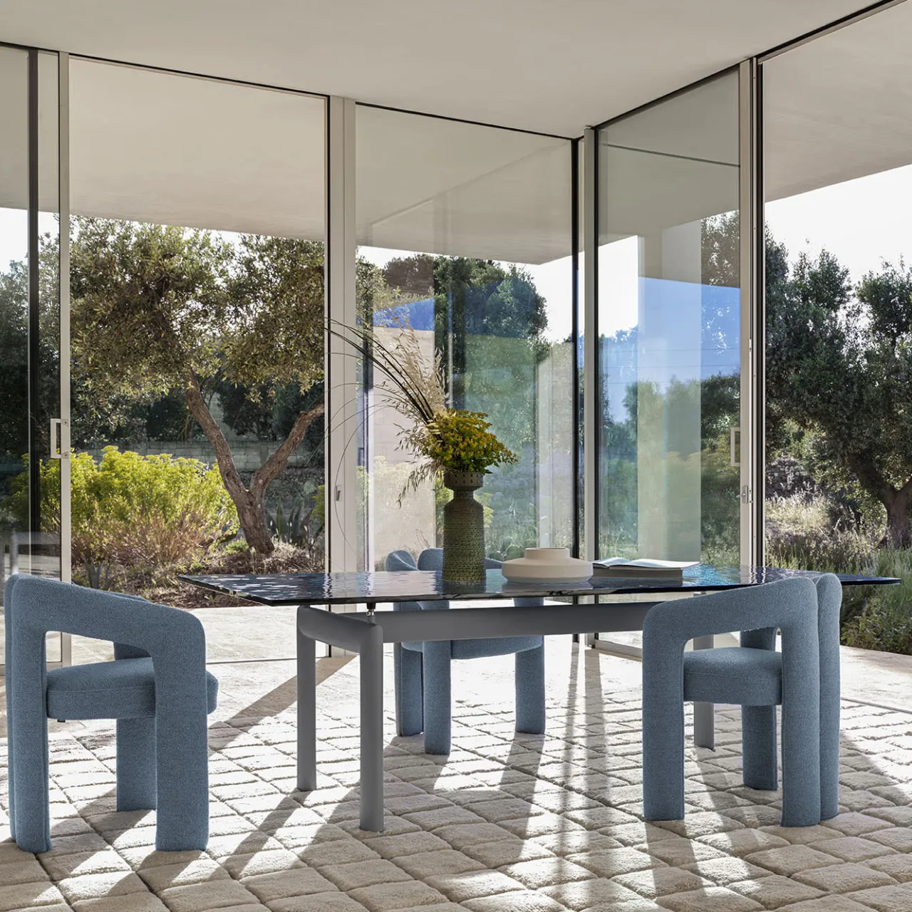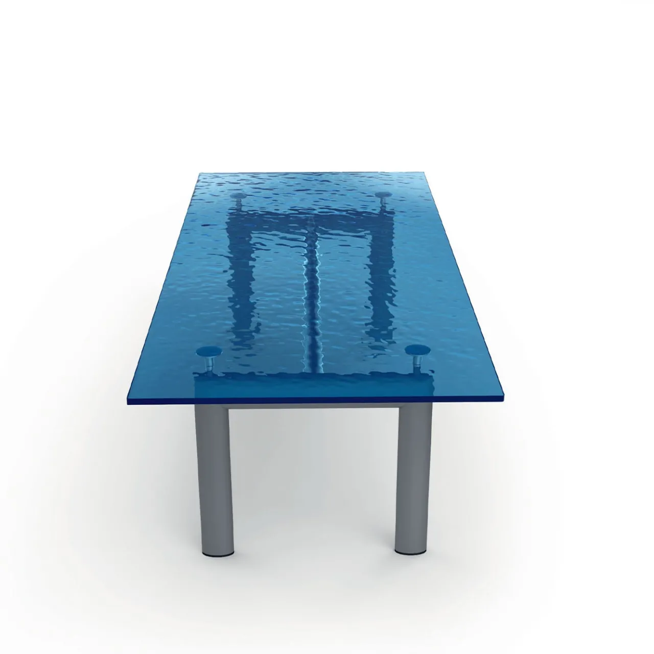 Design che ha debuttato al Salon d’Automne del 1929, questo tavolo da pranzo si distingue per l’armonioso contrasto tra la rigorosa base in acciaio di colore grigio e le trasparenze del piano in vetro termoformato color acquamarina che ricorda la superficie leggermente increspata del mare. I supporti filettati collegano la base al piano, permettendo di personalizzarne l’altezza fino a 5 cm. Esplorate tutte le varianti disponibili con il Concierge.
