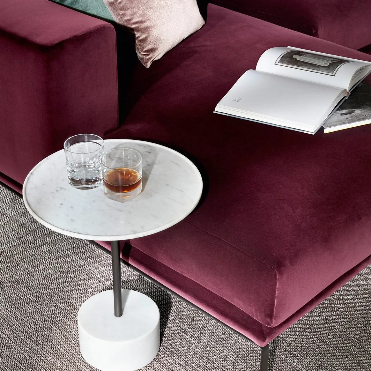 9 – Tavolo basso con piano in marmo. Creati da Piero Lissoni, questi tavoli cilindrici e modulari sono stati pensati per gli ambienti aziendali o di ospitalità. Disponibili nelle altezze standard o coffee-table, con piani rotondi di varie dimensioni, questi complementi esprimono una soave eleganza e sono disponibili in una gamma di materiali che ben si abbinano alle finiture degli altri pezzi di Cassina. Le linee semplici, adatte a molti ambienti, sono valorizzate dalla qualità dei materiali utilizzati. Tra questi, il legno massiccio di frassino e noce americano e vari tipi di marmo. Anche i piani in vetro sono disponibili in numerose opzioni di colore. Le versioni da pranzo sono disponibili anche con piano in laminato.