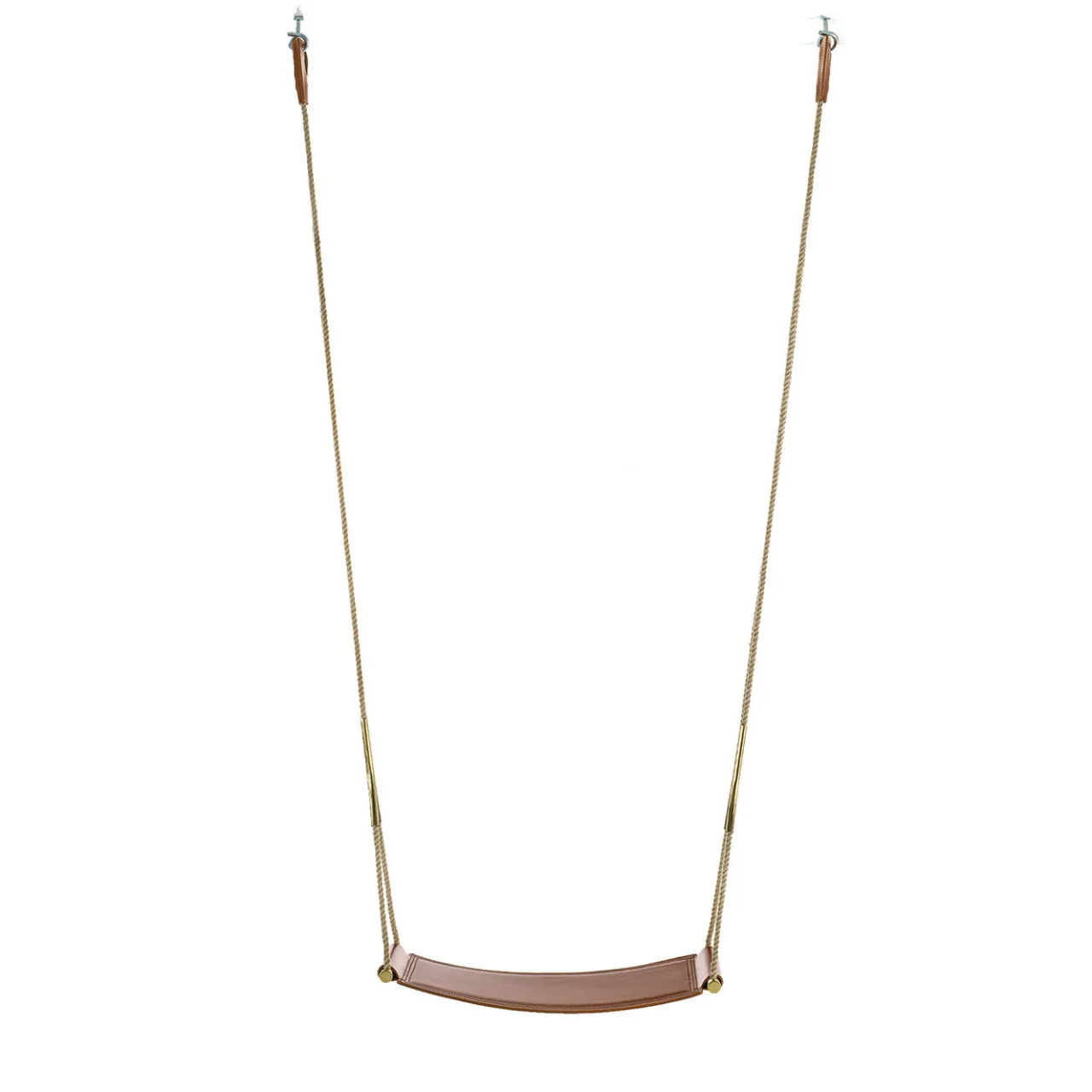 Altalena da interni con seduta in pelle, disponibile in diversi colori. Componenti metallici in ottone bronzato. La corda è abbinata alla finitura dei componenti metallici; ha un’eccellente resistenza alla rottura e un basso allungamento. L’altezza della corda è standard, ma può essere tagliata e regolata per adattarla al vostro spazio. Le cuciture della pelle sono realizzate tono su tono. Tutti i componenti sono disponibili in altri colori. Per maggiori informazioni, contattare il concierge.