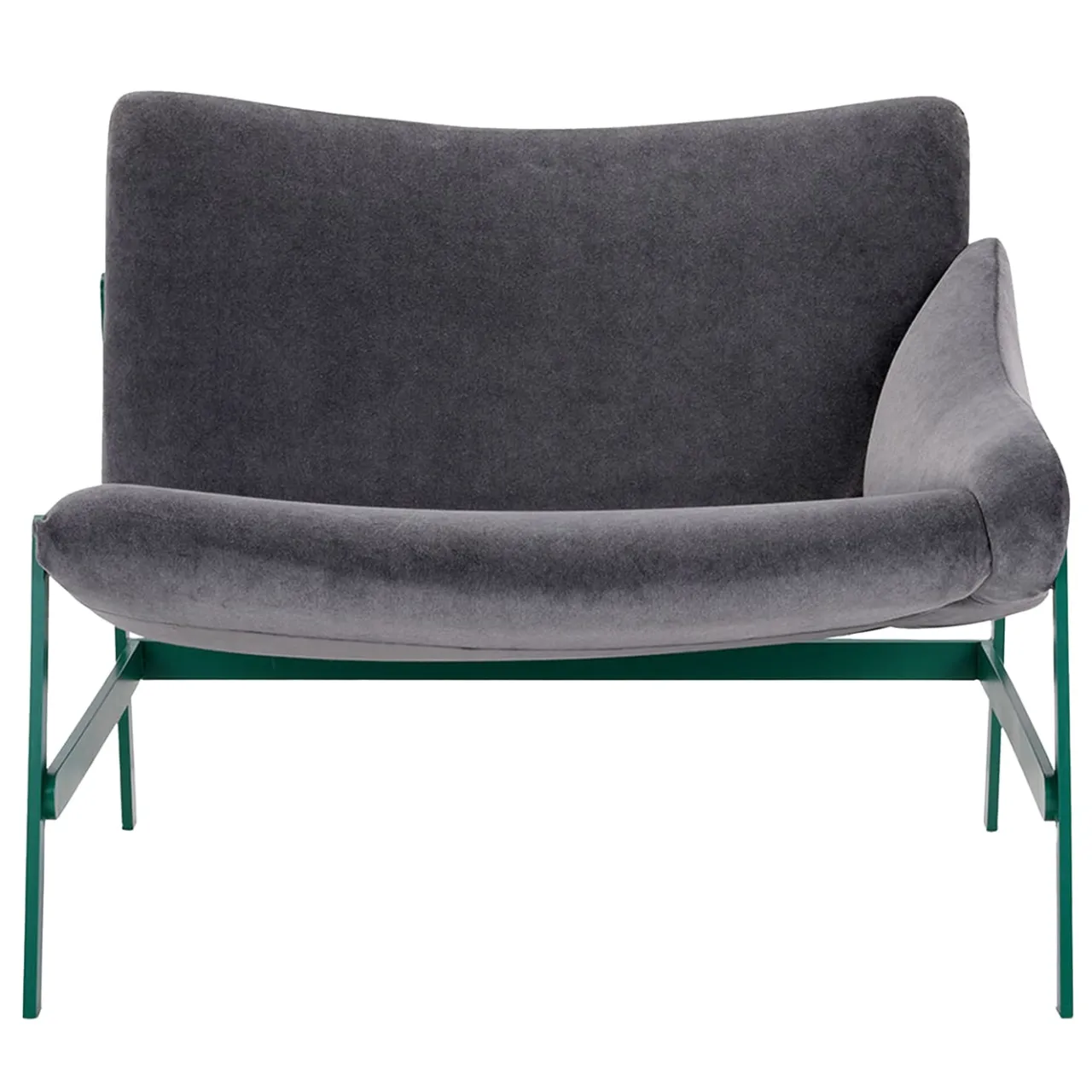 Delicate curve che tracciano il profilo di un’ampia e accogliente seduta con un unico bracciolo, contraddistinguono questa sofisticata poltrona lounge. Poggiata su un’ariosa base laccata verde, la seduta alta 40 cm vanta un elegante rivestimento in velluto di poliestere grigio senza tempo, che offre un’esperienza tattile superba. Nel catalogo Artemest sono disponibili molte altre varianti di colori e rivestimenti.