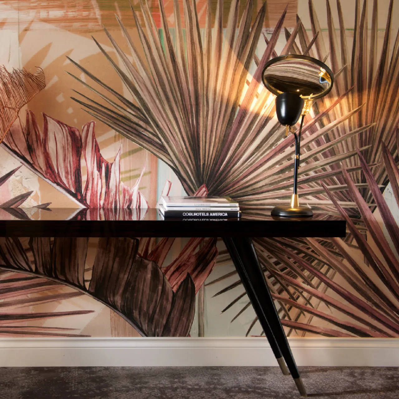 Parte della splendida serie Andrea, questa consolle è un superbo pezzo di benvenuto da aggiungere in un ingresso moderno e può essere utilizzata come superficie espositiva aggiuntiva dietro un divano nel soggiorno o nello studio. La sua elegante silhouette comprende gambe inclinate e un piano spesso 7 cm. Interamente realizzato in ebano Macassar, le punte sono impreziosite da metallo bronzato, mentre le gambe sono laccate in nero lucido. Questo oggetto d’arredo funzionale e senza tempo può essere abbinato ad altri della stessa serie per un effetto completo.