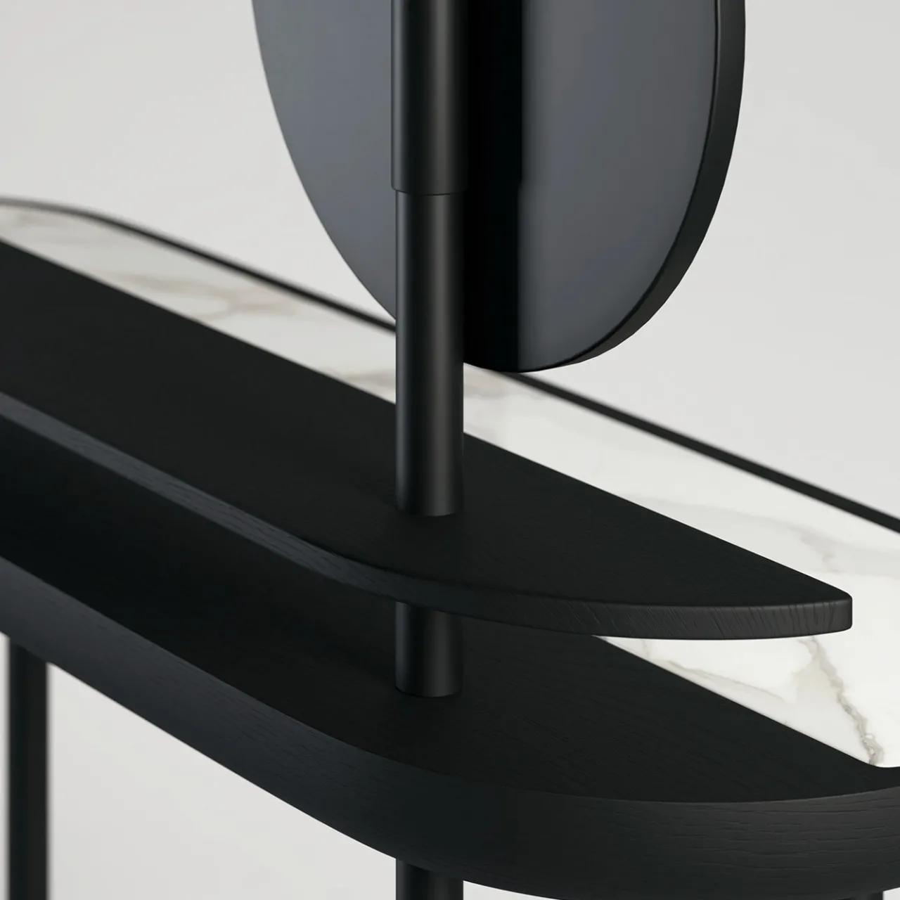 L’Apollo Desk, progettato da Artefatto Design Studio, è un elegante tavolo da trucco con piano in legno di Dark Stained Walnut, inserto in marmo Premium Calacatta e specchio Extra Clear rotante. Con due livelli e curve morbide, questo pezzo unico combina funzionalità e stile. Apollo è disponibile in diverse opzioni di legno, pietra e rivestimento, mentre la struttura in metallo laccato Jet Black aggiunge un tocco di sofisticatezza.
