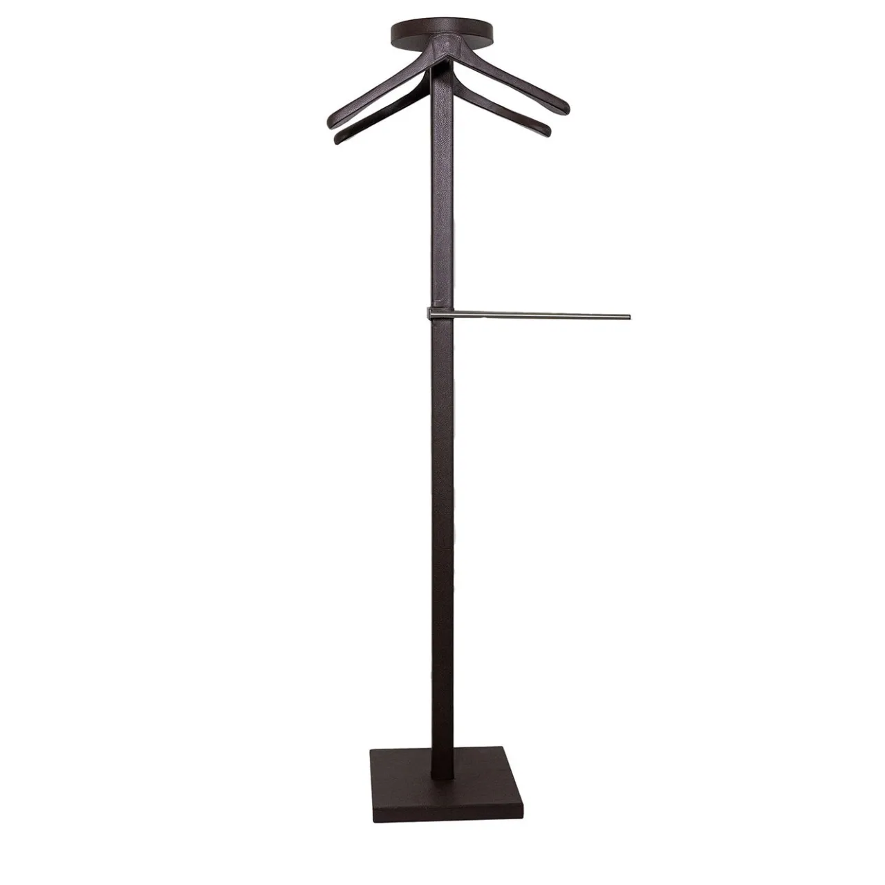 Realizzato in morbida pelle vera con dettagli in metallo, questo porta abiti color cacao offre una soluzione raffinata per l’organizzazione dei capi. Progettato per contenere giacche, camicie e pantaloni, dispone di una base quadrata robusta e appendini integrati, garantendo stabilità e funzionalità. La sua dimensione media lo rende adatto a camere da letto o cabine armadio, unendo praticità a un’eleganza discreta. Disponibile in quattordici colori per adattarsi a diversi ambienti. Per maggiori informazioni, contattare il Concierge.