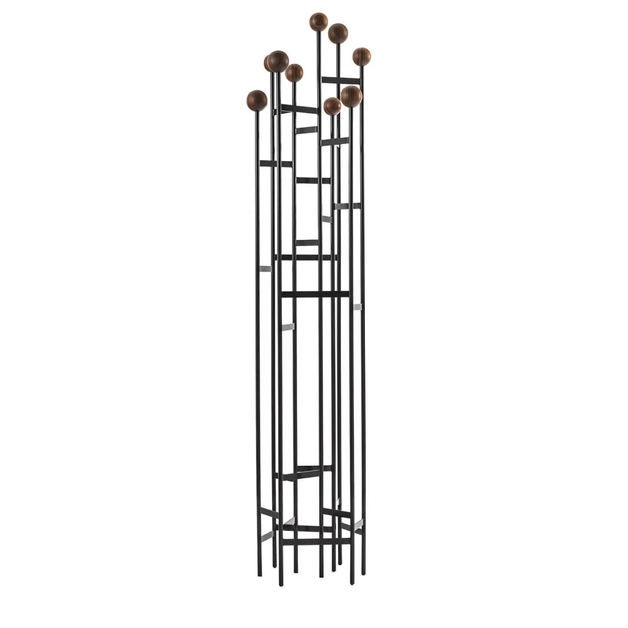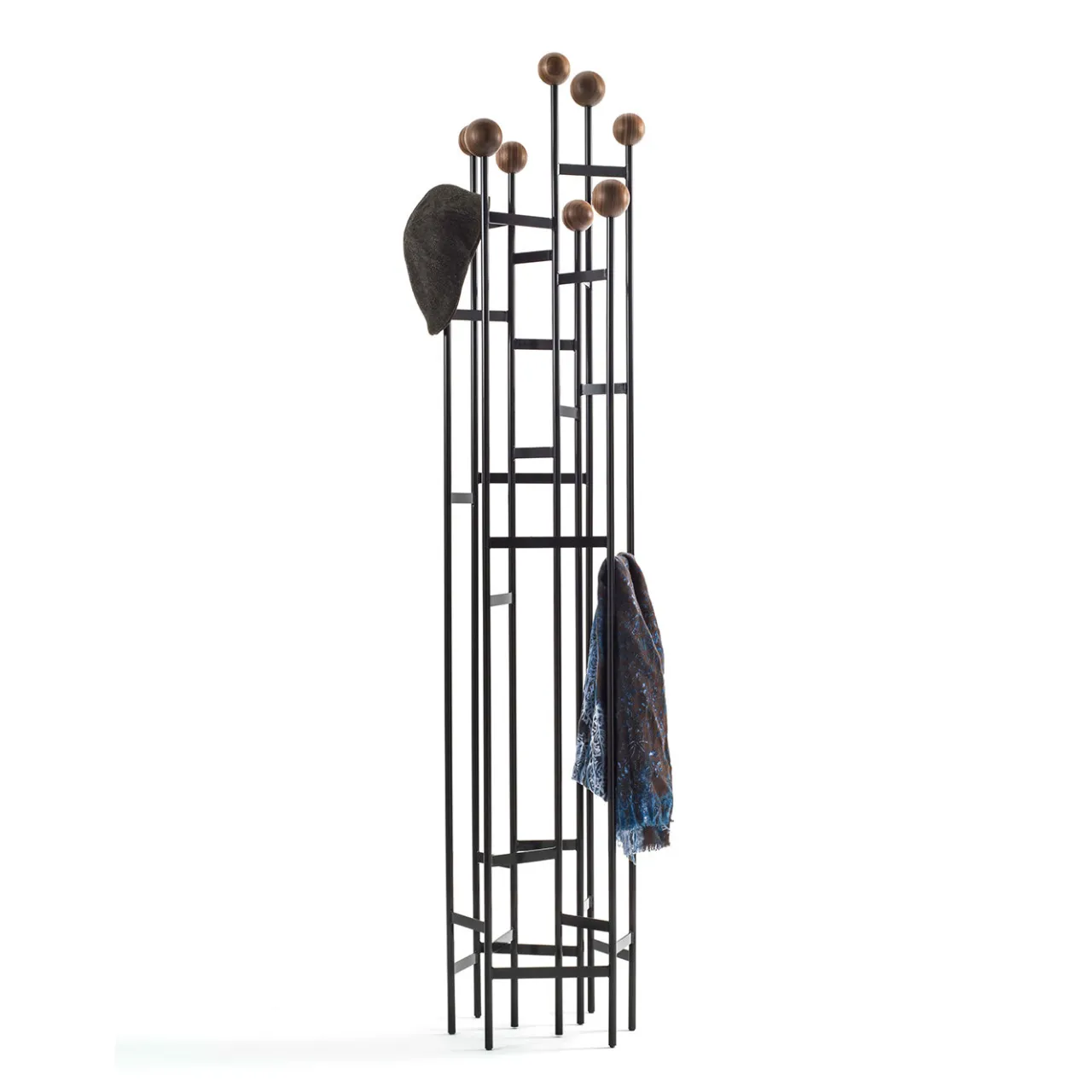 L’appendiabiti Planets è un’aggiunta elegante e comoda al vostro corridoio o spazio abitativo. Realizzato in metallo con finitura laccata nera, presenta sfere in legno massiccio in cima ai montanti per aggiungere carattere e stile e per proteggere cappelli e cappotti. Stile compatto per contenere diversi oggetti.