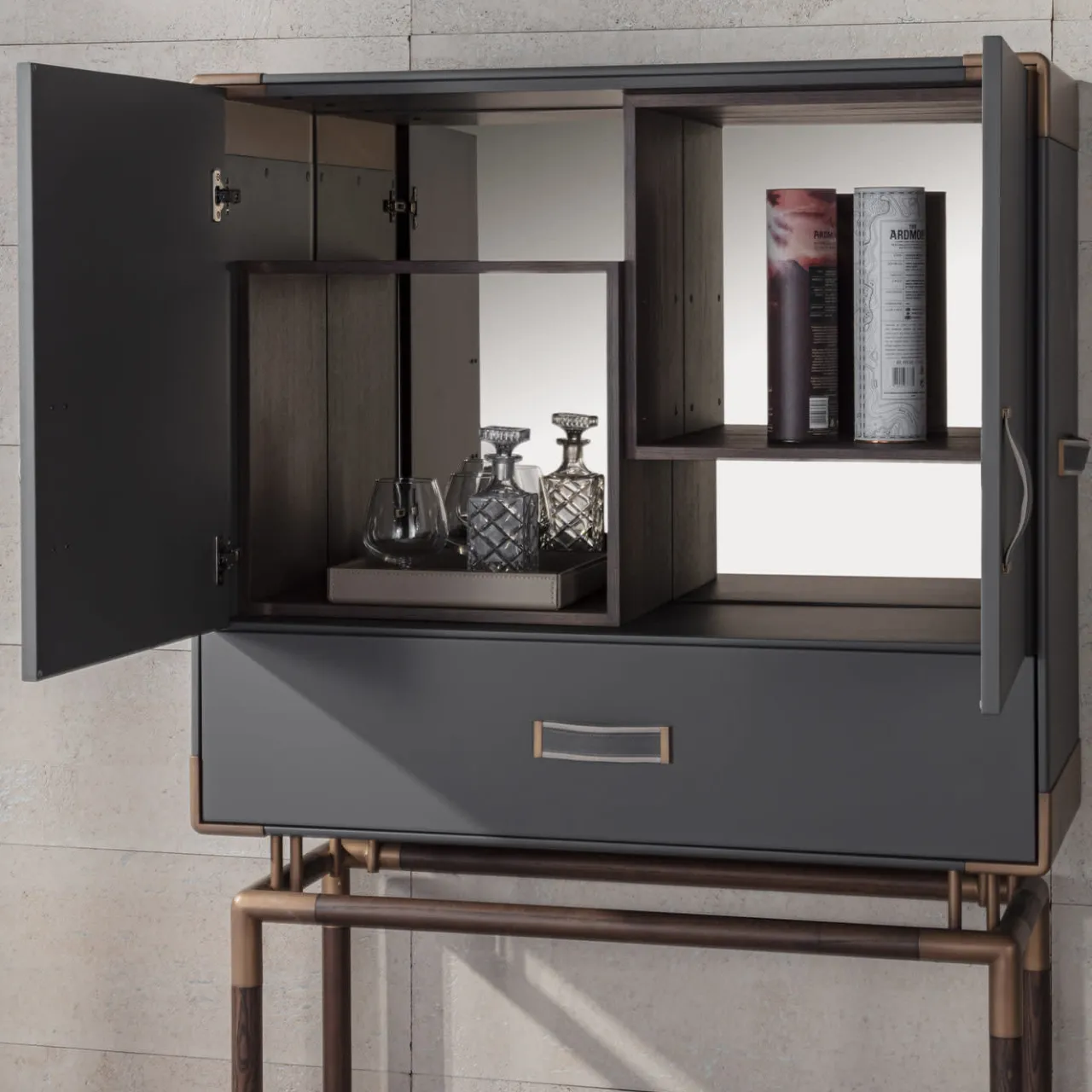 La linea Anzio, composta da credenza, consolle, tavolo e divano, si ispira all’immagine del viaggiatore dandy. Le forme arrotondate ricordano le cassapanche vintage della Belle Époque, mentre gli accostamenti cromatici audaci e le personalizzazioni senza tempo costituiscono i tratti distintivi della collezione. Una linea dalla forte personalità, con la quale distinguersi ed esprimere la propria personalità.