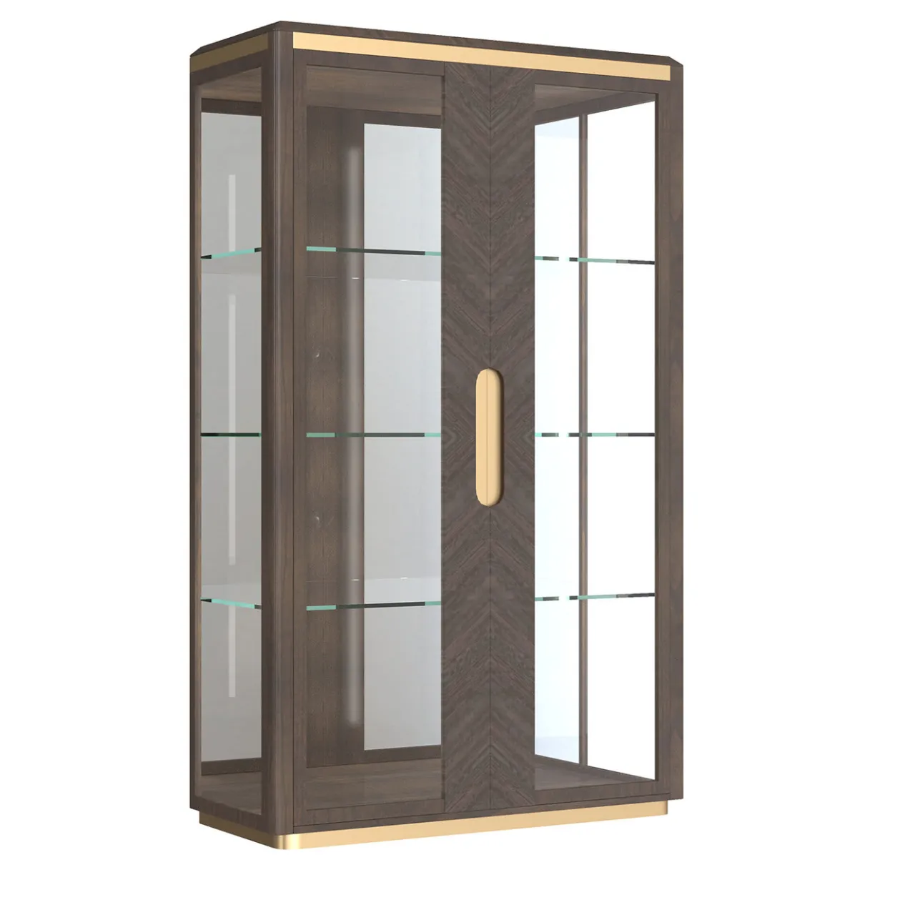 Eleganza e raffinatezza contraddistinguono questo sorprendente mobile che combina stili tradizionali e moderni in una silhouette accattivante e pratica. Realizzato in legno impiallacciato di eucalipto scuro, è composto da due ante in vetro squisitamente abbinate ai fianchi e ai ripiani in vetro. Per ulteriori dettagli sui materiali, consultare il Concierge.