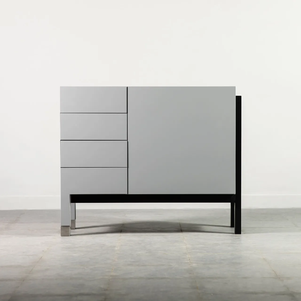 Il mobile in legno laccato opaco grigio e nero è caratterizzato da un design elegante e moderno con un sorprendente contrasto di toni grigi e neri. La finitura opaca liscia aggiunge un tocco sofisticato, mentre la struttura resistente garantisce una qualità duratura. La sua estetica raffinata e la sua versatilità lo rendono un’aggiunta funzionale ed elegante a qualsiasi spazio moderno.