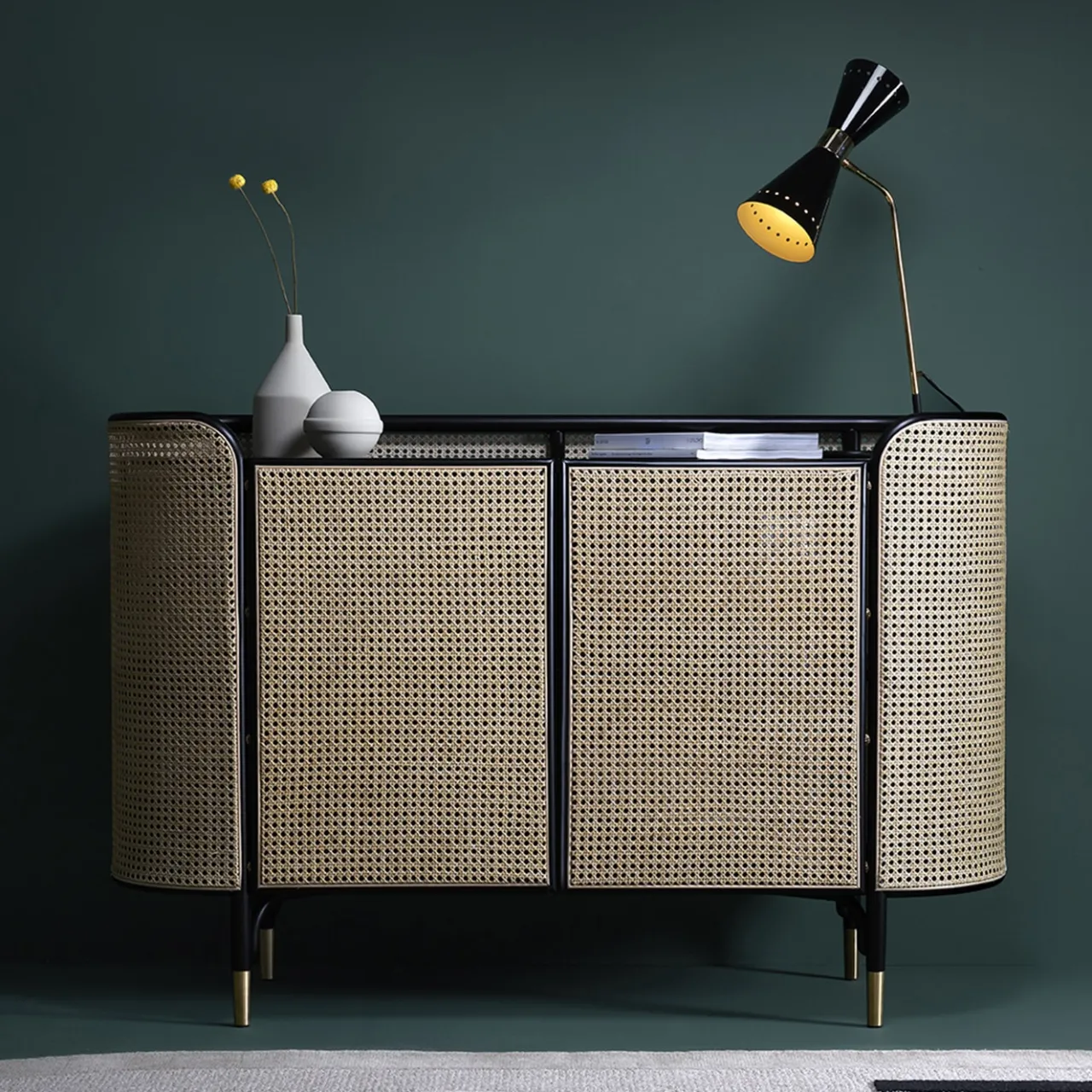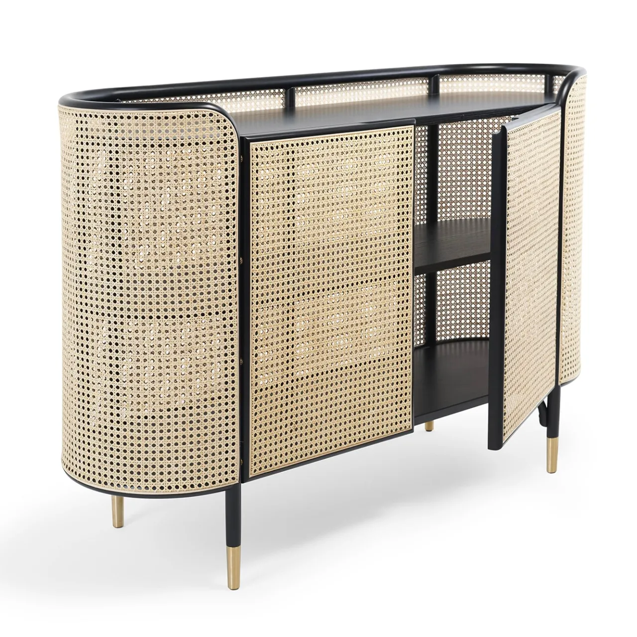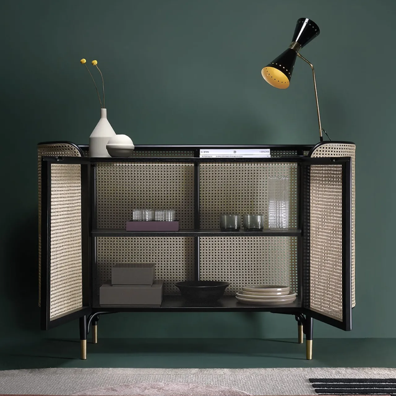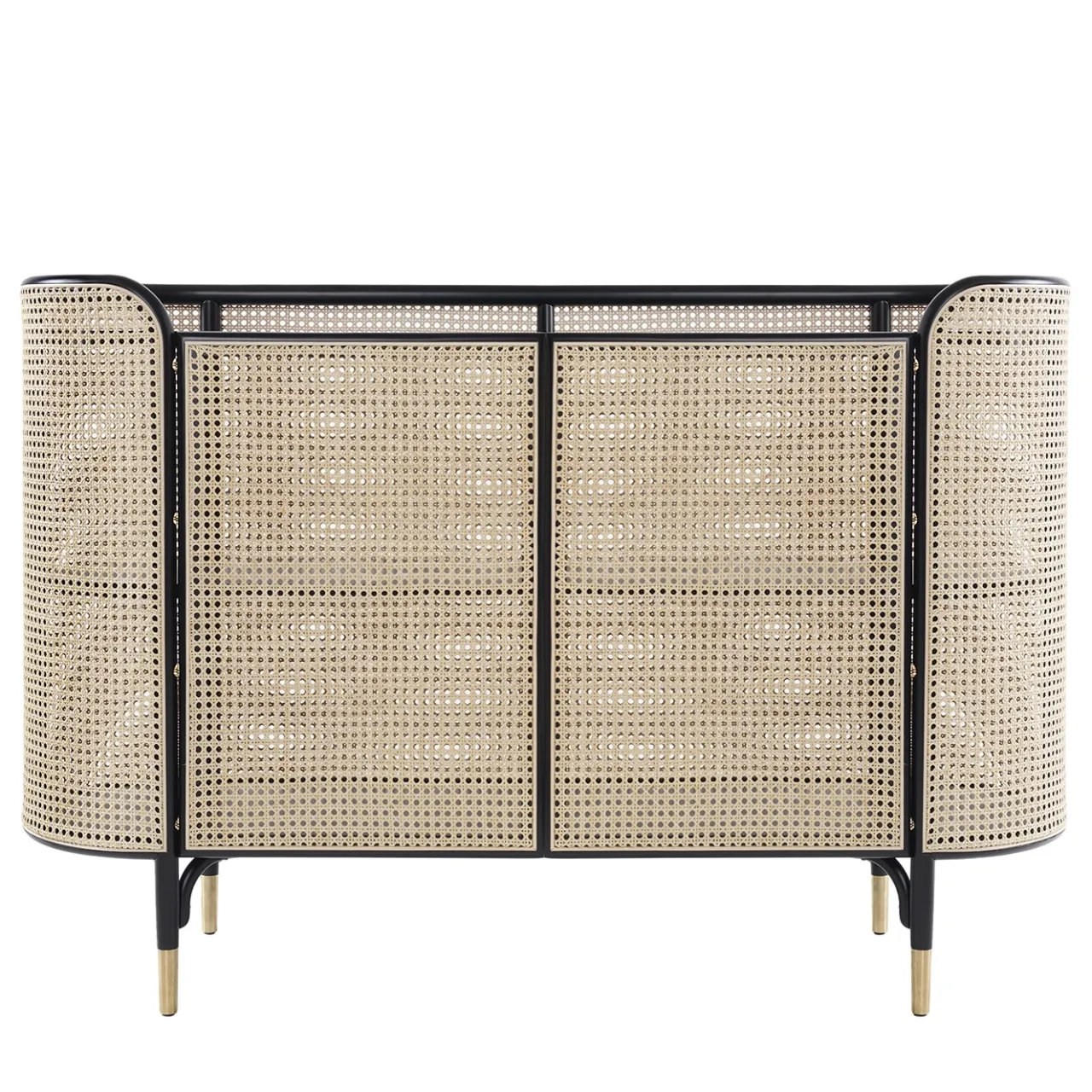L’affascinante fascino naturale della paglia di Vienna è celebrato in questo iconico progetto del duo di architetti GamFratesi, un mobile raffinato e moderno che può essere abbinato alla consolle, al tavolino e alla libreria della stessa serie. Arioso ed elegante, è realizzato a mano in faggio curvato e laccato nero e paglia di Vienna. L’intero pezzo poggia su piedini in ottone. Disponibile in finitura naturale su richiesta al Concierge.