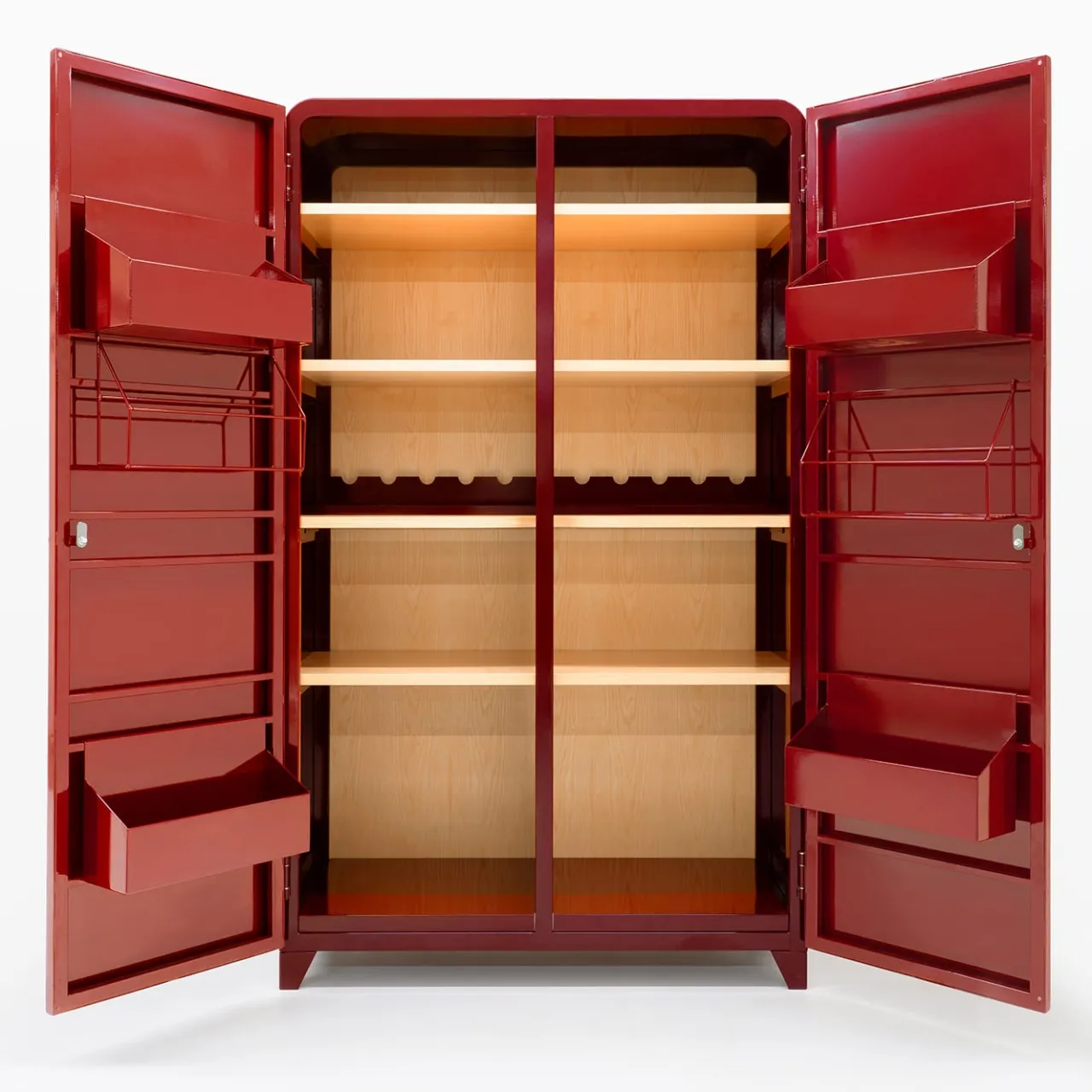 L’acciaio verniciato a polvere, abbinato al legno, diventa il linguaggio scelto da Officine Tamborrino per reimmaginare un’icona americana degli anni Venti, il mobile Cambusa. Combinando la semplicità delle linee con la robustezza dei materiali, ospita generosamente utensili da cucina, cibo e vini. Le finiture industriali si fondono con una meticolosa lavorazione artigianale per un fascino senza tempo.