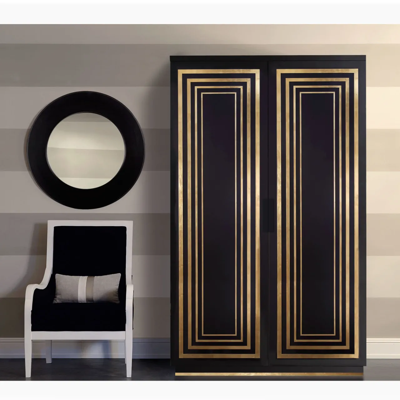 Questo mobile o armadio a due ante è il risultato della migliore lavorazione artigianale italiana. Perfetto per riporre qualsiasi cosa, dai libri alle stoviglie, è dotato di quattro ripiani interni e due ante sovrapposte con dettagli in foglia d’oro applicati a mano. L’armadio è disponibile in finitura laccata opaca moka. Designer: Isabella Costantini. Chiedere al Concierge per le opzioni di personalizzazione.