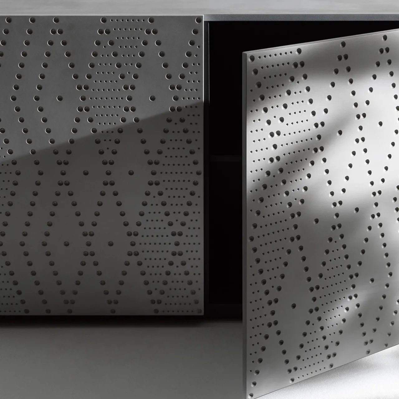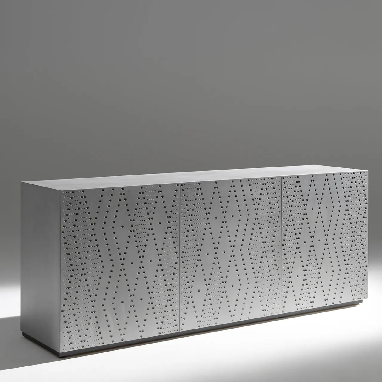 Questa madia presenta un design moderno con tre ante e tre ripiani interni, offrendo soluzioni di contenimento pratiche. La struttura e i ripiani interni sono realizzati in legno ingegnerizzato laccato, mentre le ante sono in MDF laccato. Il modello è proposto nella distintiva finitura “fonderia alluminio” ed è disponibile in diverse finiture e dimensioni per adattarsi a vari stili d’arredo. Per maggiori informazioni, contattare il concierge.