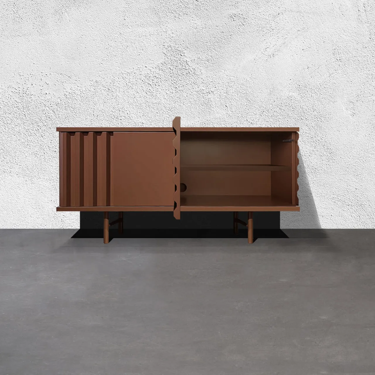 Ispirata ai classici container, la credenza B-SIDE dà un tocco di modernità agli spazi abitativi. Il design è caratterizzato da pannelli frontali a doghe che offrono un intrigante gioco di luci e ombre. Realizzata in MDF ecologico con finitura opaca industriale, è disponibile in tre dimensioni, compresa la versione a 2 ante. Le eleganti gambe della credenza, realizzate in acciaio inox, completano il look moderno. Personalizzabile con diverse finiture e opzioni di illuminazione interna, contattate il Concierge.