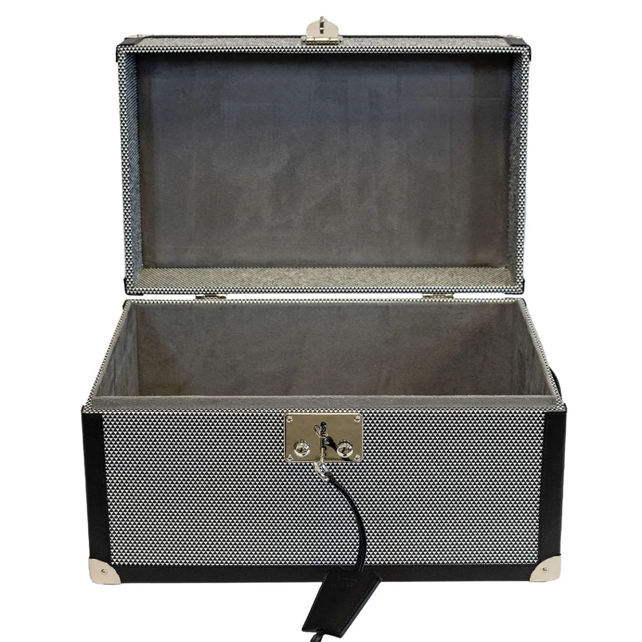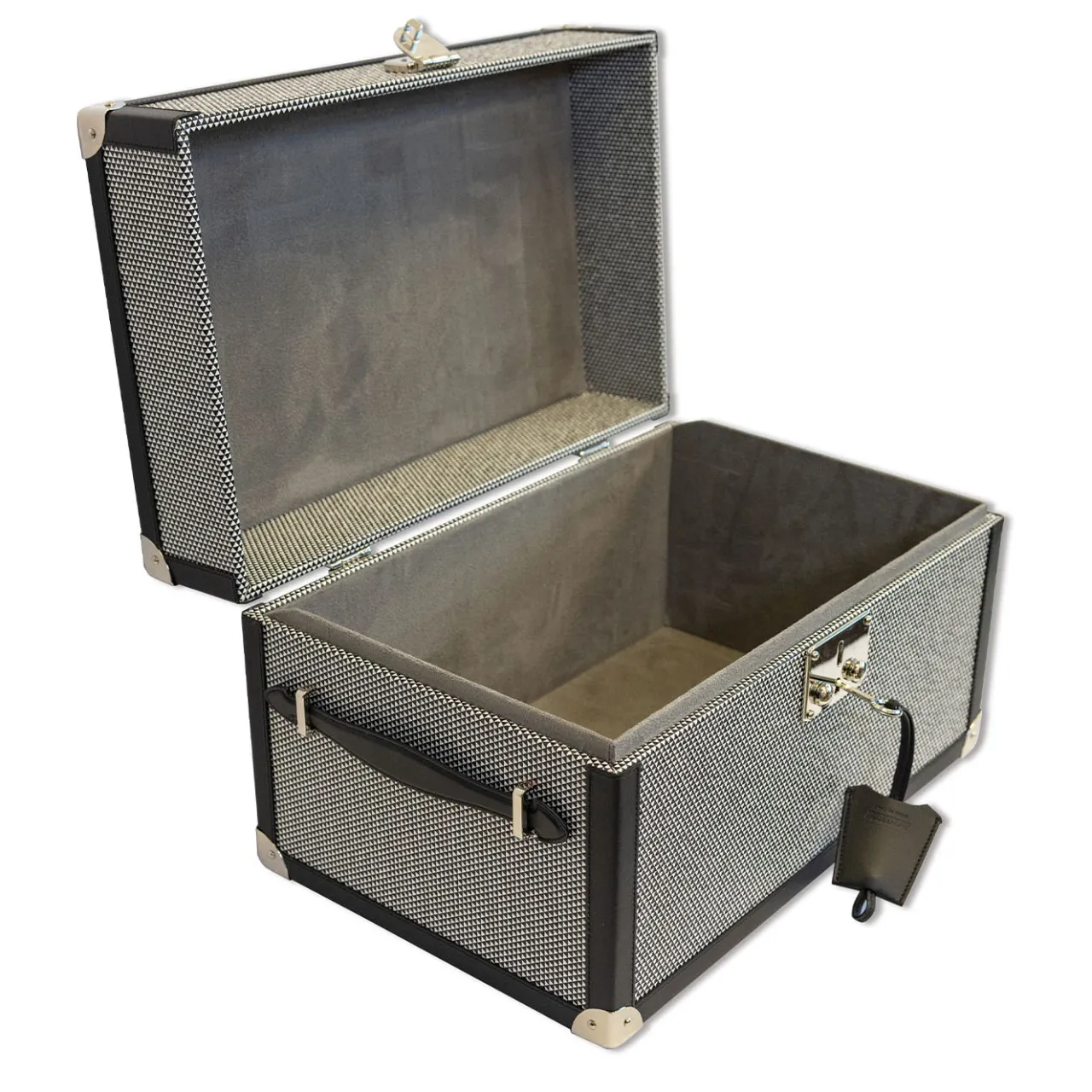 Il baule in legno è meticolosamente lavorato a mano e ornato con vera pelle di prima qualità, per creare uno straordinario effetto ottico. L’interno è lussuosamente foderato in morbida microfibra per una maggiore protezione. Disponibile nella sofisticata tonalità Optical black notte e in altri quattordici colori, offre un’ampia gamma di opzioni per soddisfare i gusti individuali. Per ulteriori informazioni, contattare il Concierge.