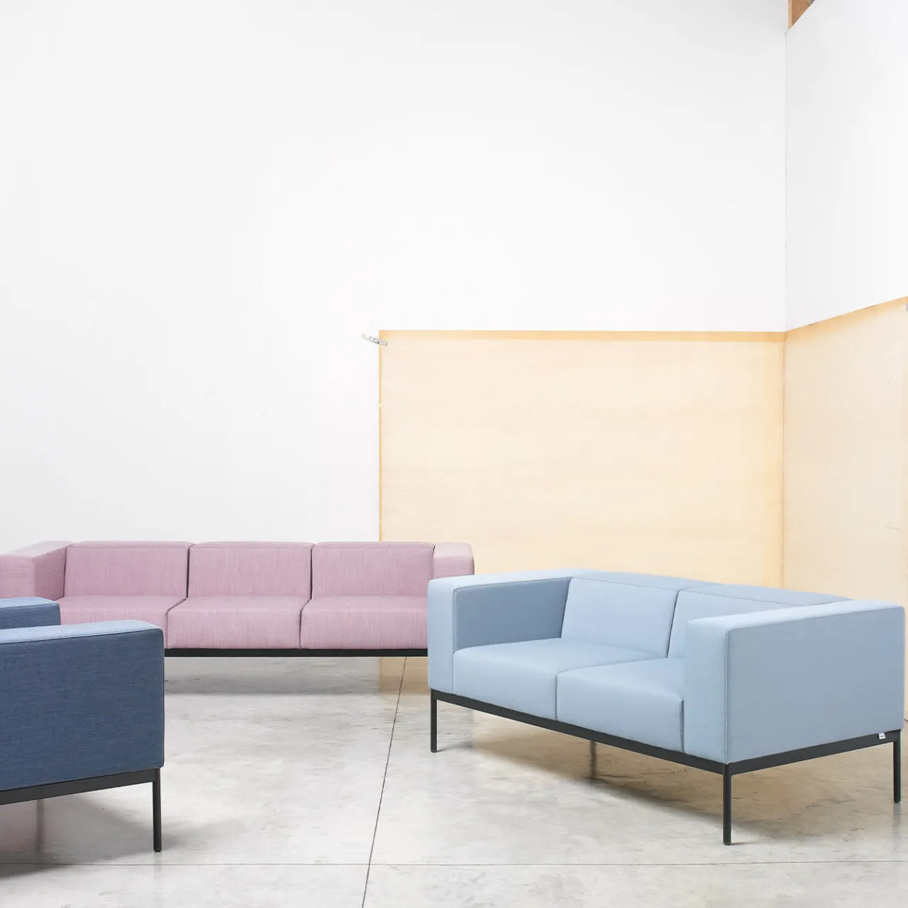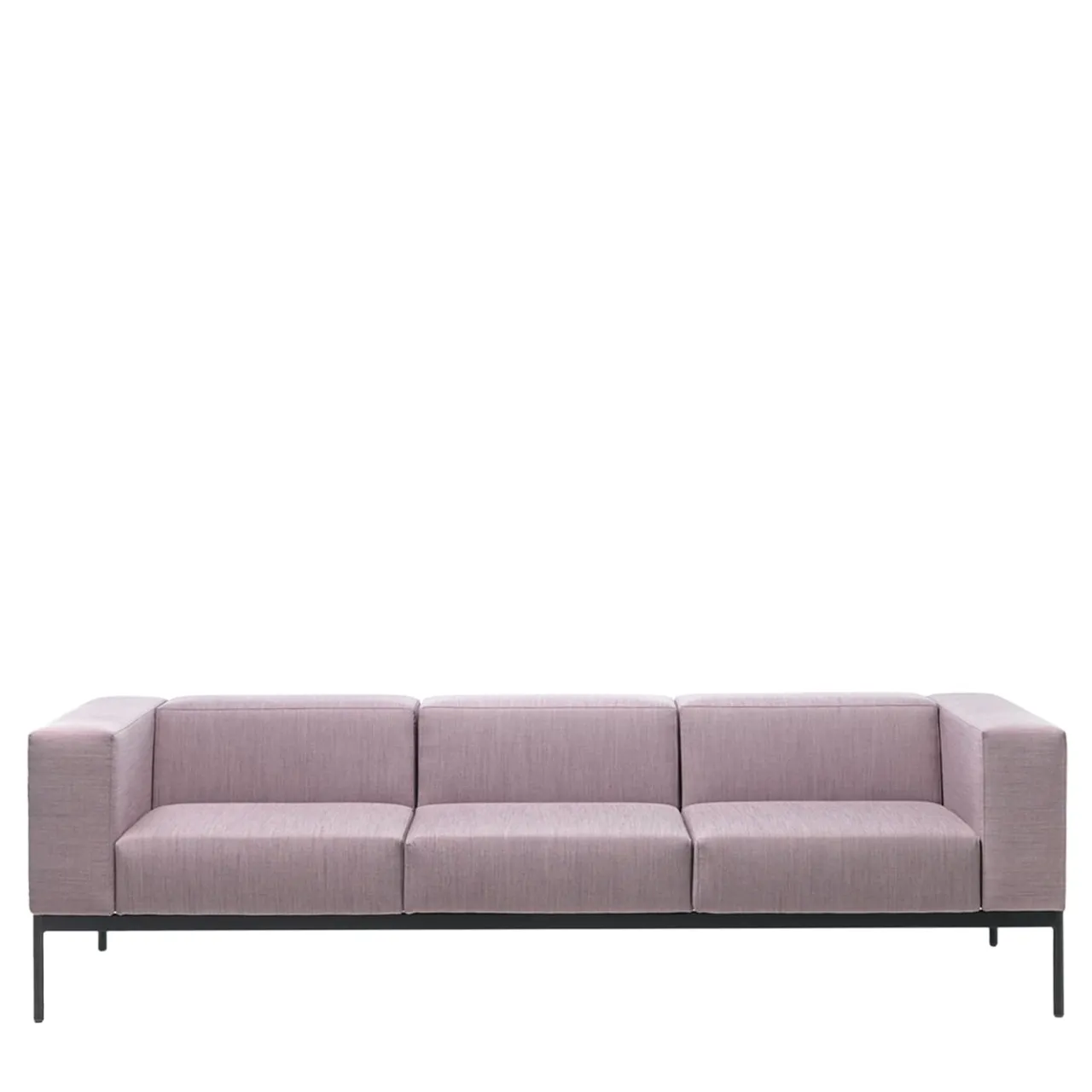 Questo divano imbottito a 3 posti è caratterizzato da una struttura a 4 gambe in acciaio verniciato nero opaco, per garantire eleganza e funzionalità in ogni salotto.