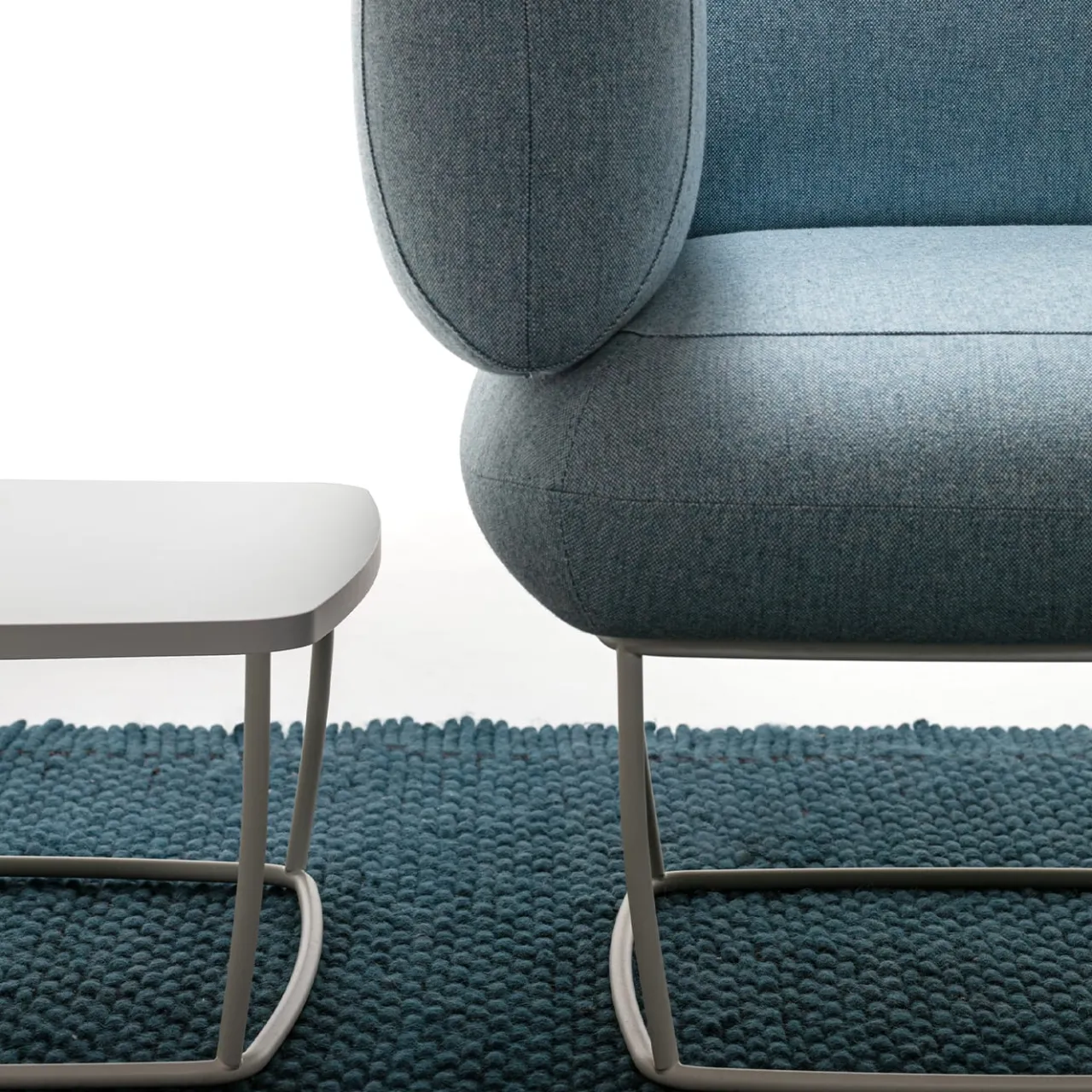 Bernard è una collezione completa e versatile, adatta sia al residenziale che al contract. Il nucleo originale è rappresentato da una sofisticata poltroncina, che si distingue per il doppio senso di seduta, ottenuto grazie al disegno di moduli identici per schienale e bracciolo, che possono variare liberamente la loro funzione. Il rivestimento in lana vergine e lino di colore azzurro completa la base laccata avorio. Sono disponibili altre finiture, per informazioni rivolgersi al Concierge.