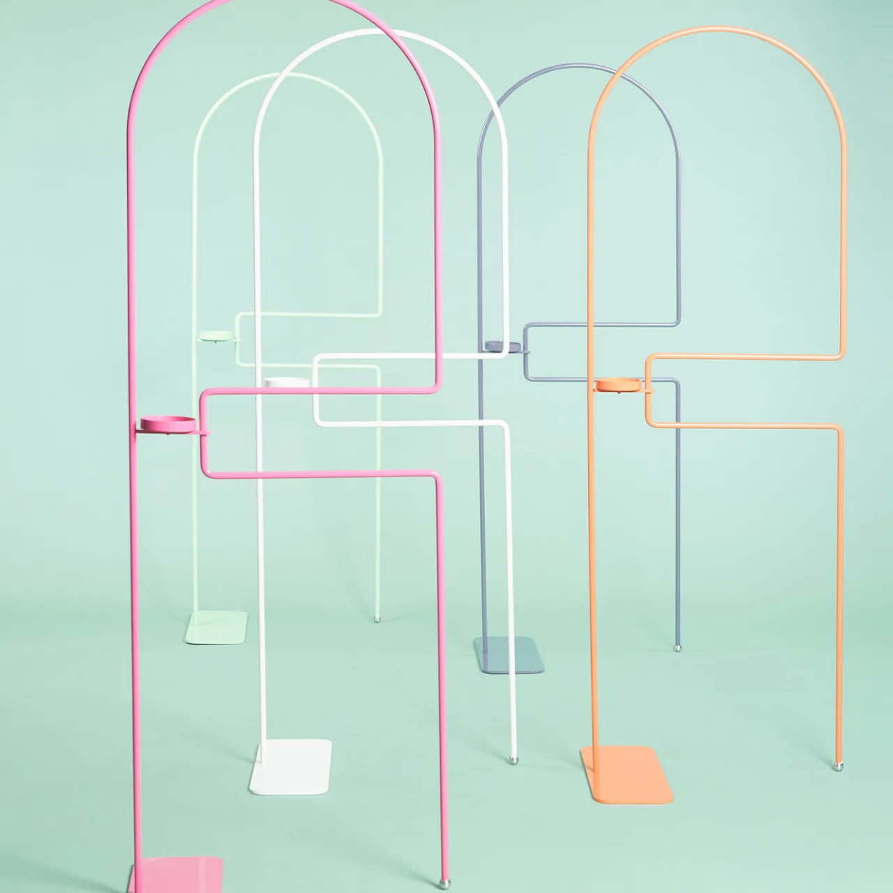 Appendiabiti da camera o da ingresso in tubo di ferro curvato. Armonioso e sottile, accompagna l’ospite nell’accoglienza quotidiana.