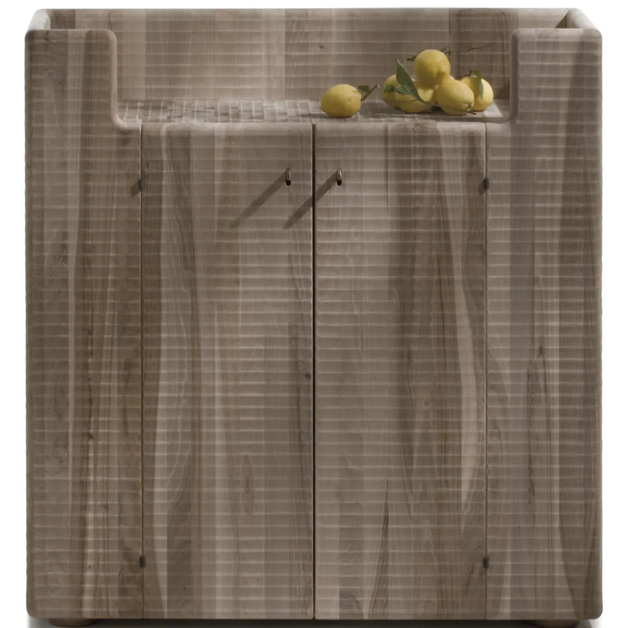 Per conferire un tocco di eleganza agli interni contemporanei, questa sublime credenza a due ante è realizzata in un blocco massiccio di noce italiano, rifinito a mano a tutto rilievo con pialla e sgorbia. Le cerniere e le serrature in acciaio fatte a mano sono a vista e ne esaltano la natura artigianale. Si prega di informarsi presso il Concierge per ulteriori dettagli e possibili opzioni di personalizzazione.
