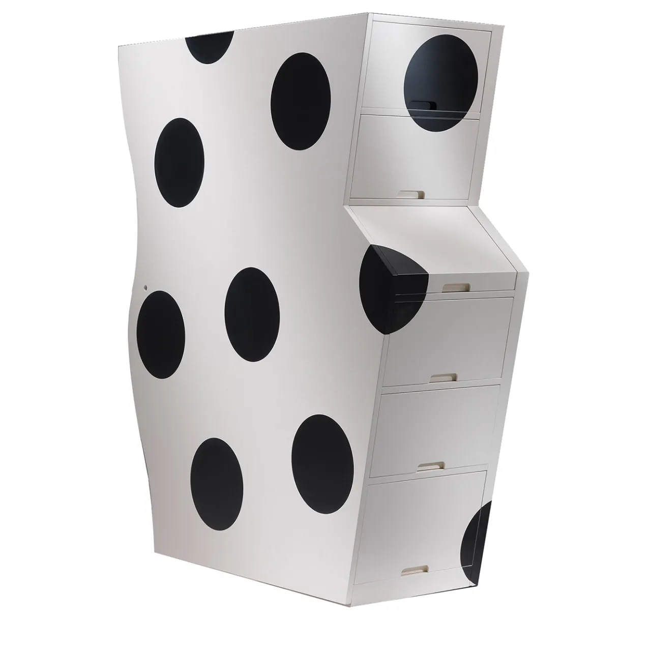 Questa meraviglia a sei porte è un viaggio attraverso i contrasti, che coniuga senza soluzione di continuità il non convenzionale con un senso di rigore ed equilibrio. Truman vanta una finitura laccata bianca ornata da stravaganti pois, che aggiungono un tocco di giocosità al suo fascino sofisticato. Questo mobile è un’espressione artistica che sfida le norme del design, invitandovi a esplorare uno spazio in cui tradizione e innovazione convivono armoniosamente.