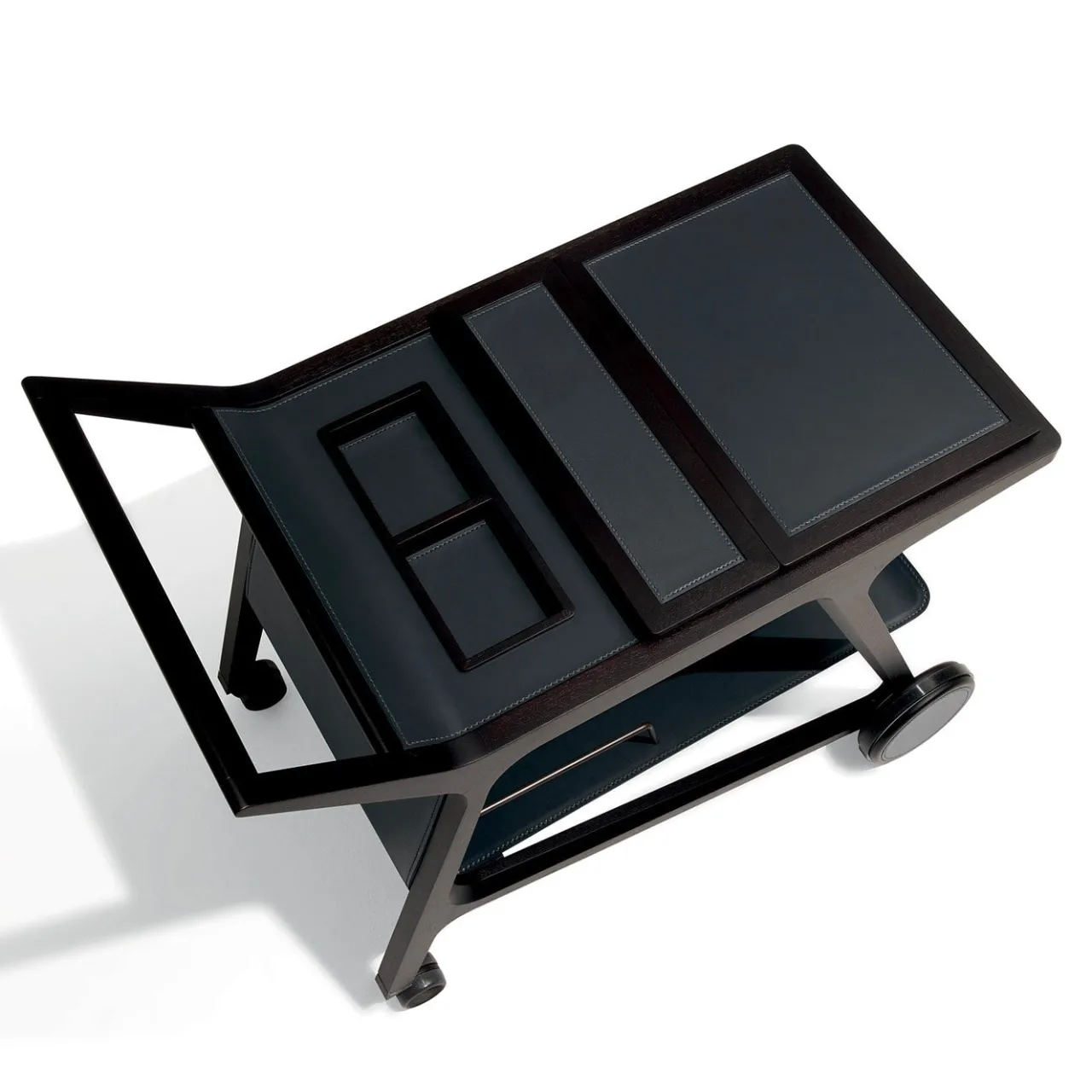 Interamente realizzato a mano in massello di noce canaletto, questo meraviglioso carrello di servizio si adatta perfettamente sia al settore privato che a quello pubblico con un carattere senza pari. Caratterizzato da una tavolozza scura che ne esalta l’eleganza, è completato da due vassoi rivestiti in pelle. Per ulteriori informazioni, consultare il Concierge.