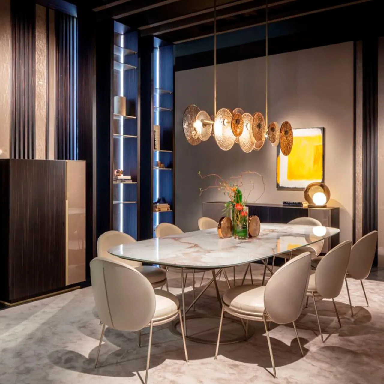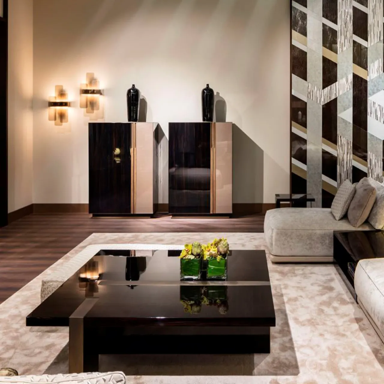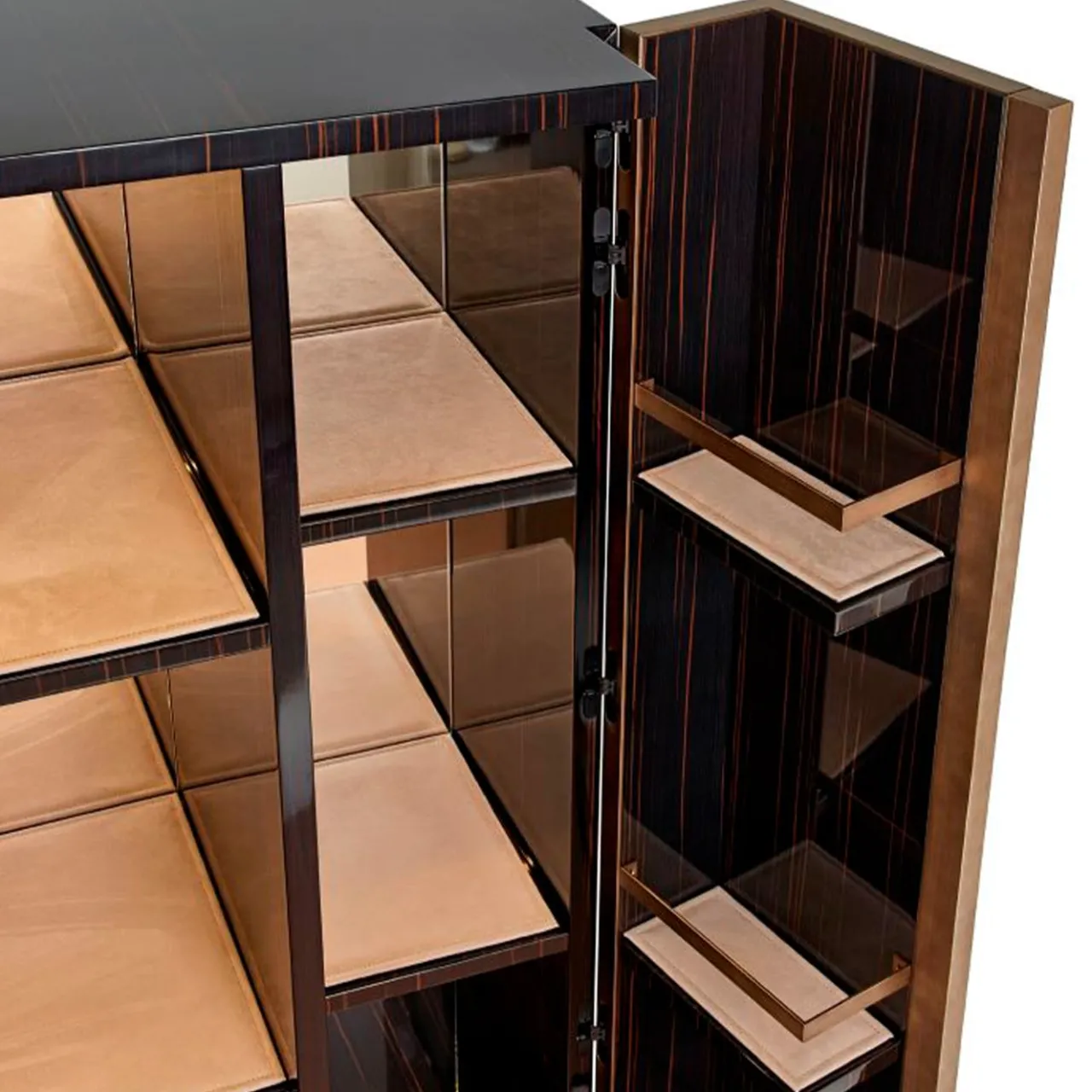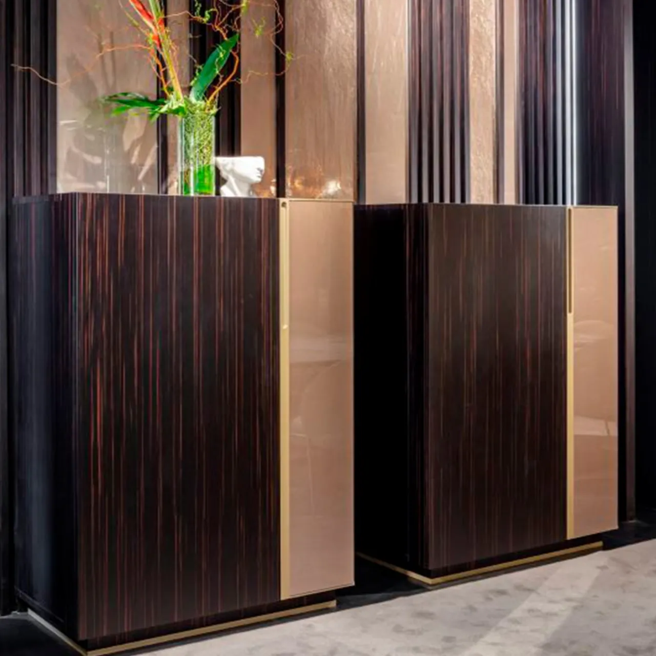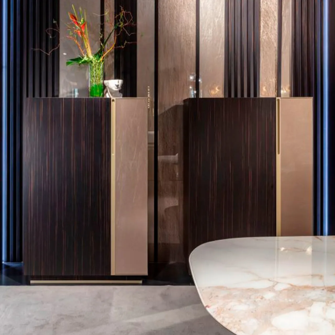 Un cassettone da cucina dalla struttura quasi architettonica che prende forma grazie all’accostamento delle fasce geometriche delle ante e dei materiali pregiati utilizzati per creare una nuova idea di classicità.