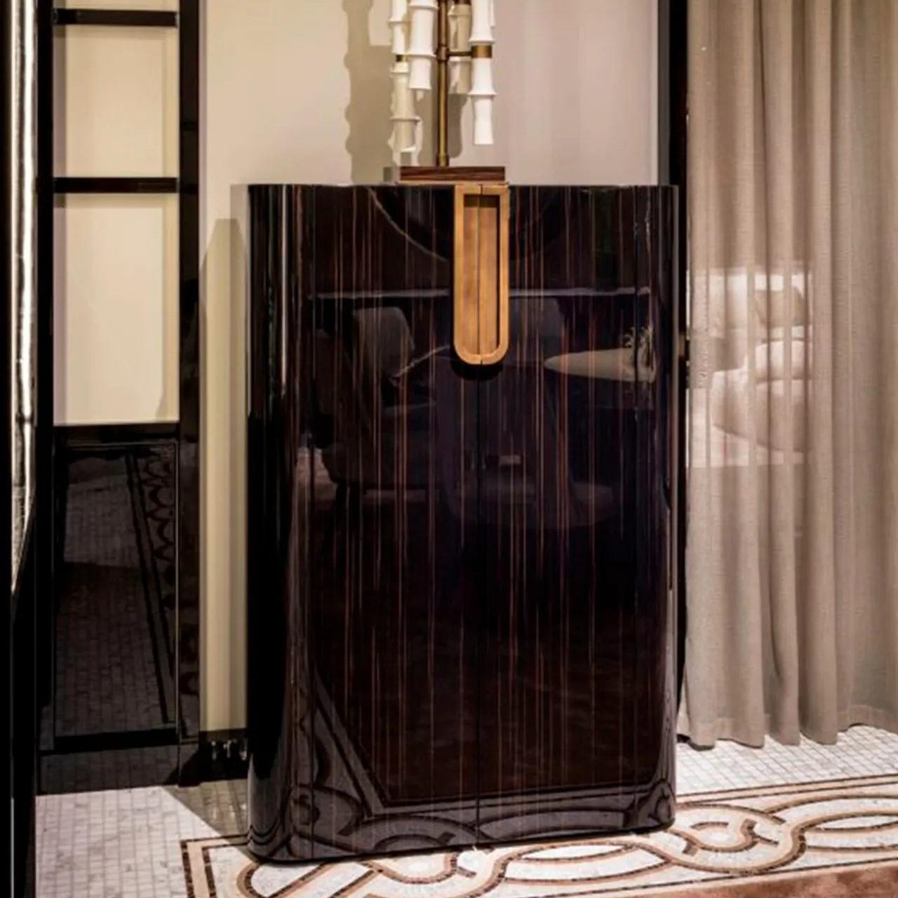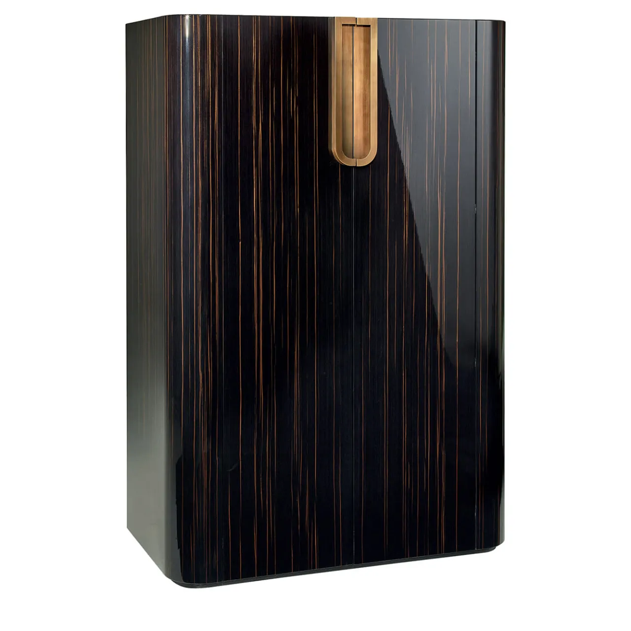 Questa cassettiera da cucina è un capolavoro. La finitura in ebano lucido le conferisce un’atmosfera di raffinatezza ed esclusività, mentre le speciali maniglie a mosaico minuto aggiungono luce alle sue superfici in tre dimensioni per un tocco di eleganza.