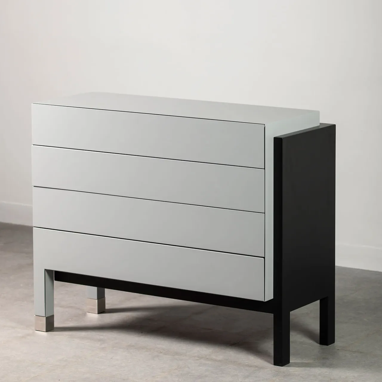 Il comò in legno laccato opaco grigio e nero combina un design elegante e moderno con una funzionalità versatile. I toni contrastanti del grigio e del nero creano un look sofisticato e contemporaneo, perfetto per qualsiasi camera da letto o spazio abitativo. Il suo design minimalista si abbina senza sforzo a diversi interni, rendendolo un’aggiunta funzionale e senza tempo all’arredamento della vostra casa.