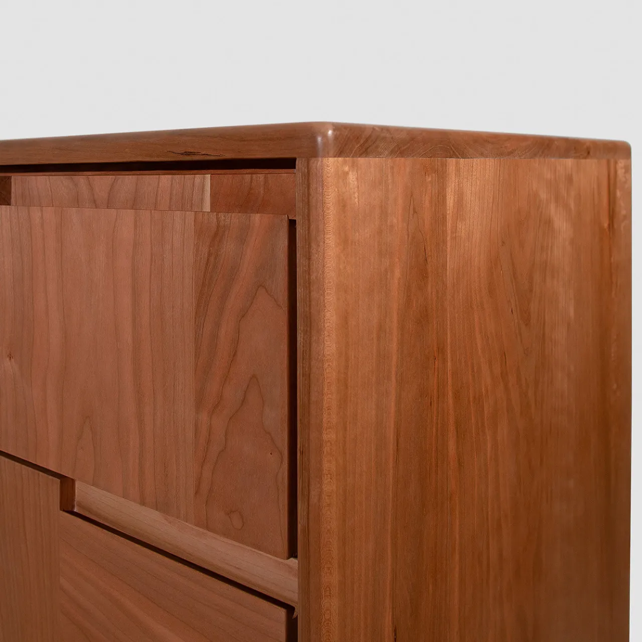 Dalle linee pure e semplici, la cassettiera Nordic rappresenta il meglio dell’arredamento moderno italiano. Realizzato a mano in ciliegio massiccio, è dotato di tre cassetti con sistema di chiusura rallentata Blumotion, i cui pannelli frontali mostrano le squisite venature del legno in un’alternanza di pannelli verticali e orizzontali, conferendo un suggestivo effetto geometrico. Bordi smussati, incastri a coda di rondine e maniglie a scomparsa strategicamente posizionate completano questo pezzo minimalista. Rifinito con vernici ecologiche a base d’acqua e lucidatura finale a mano con cera d’api.
