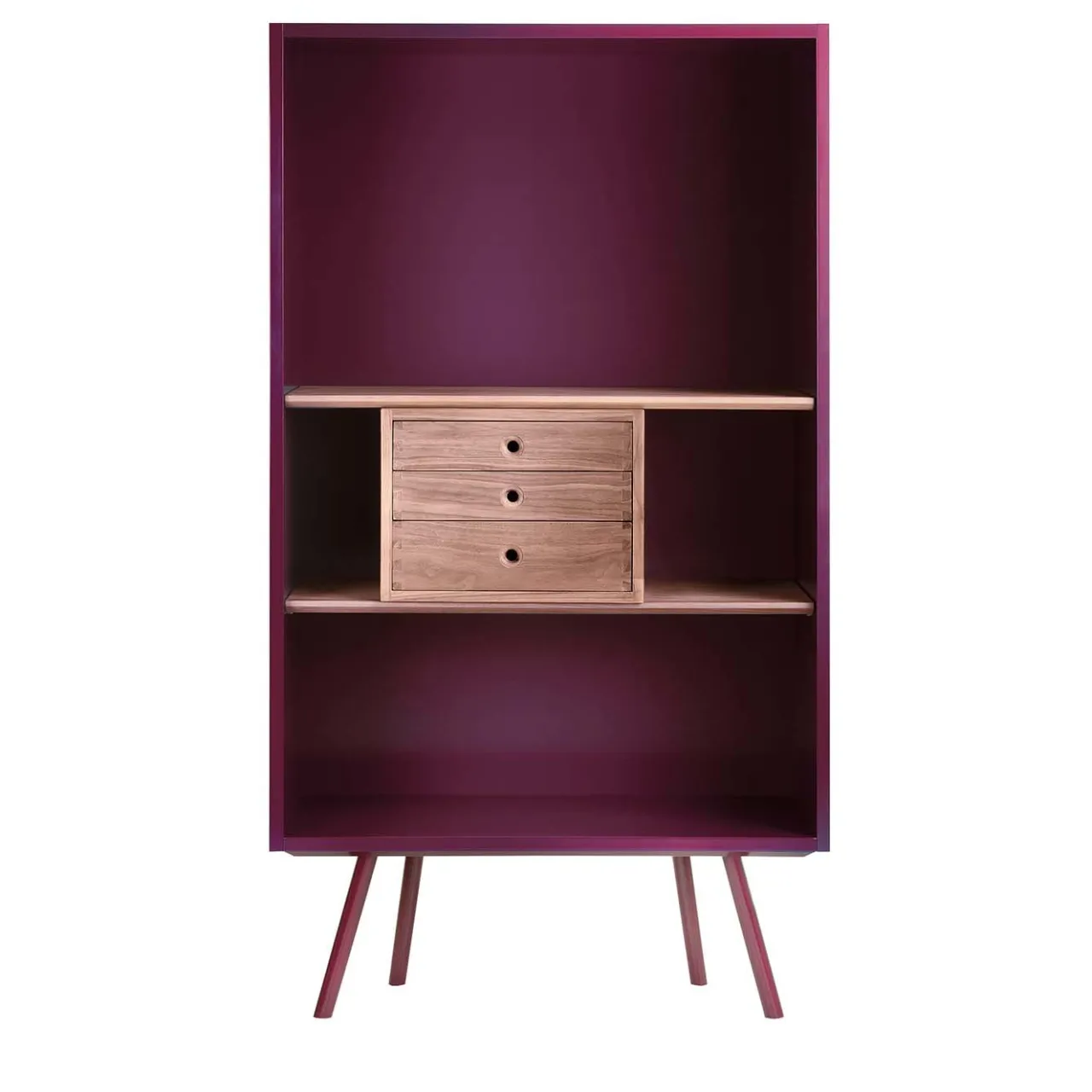 Un design elegante e affascinante caratterizza la madia a giorno Casson in amaranto viola, disegnata da Daniele della Porta. Sostenuto da gambe inclinate, il mobile alto 170 cm presenta 3 cassetti in massello di noce canaletto e 2 ripiani in multistrato impiallacciato noce canaletto con bordo anteriore in legno massello. Disponibile anche in rosso, indaco, senape brillante e viola scuro.