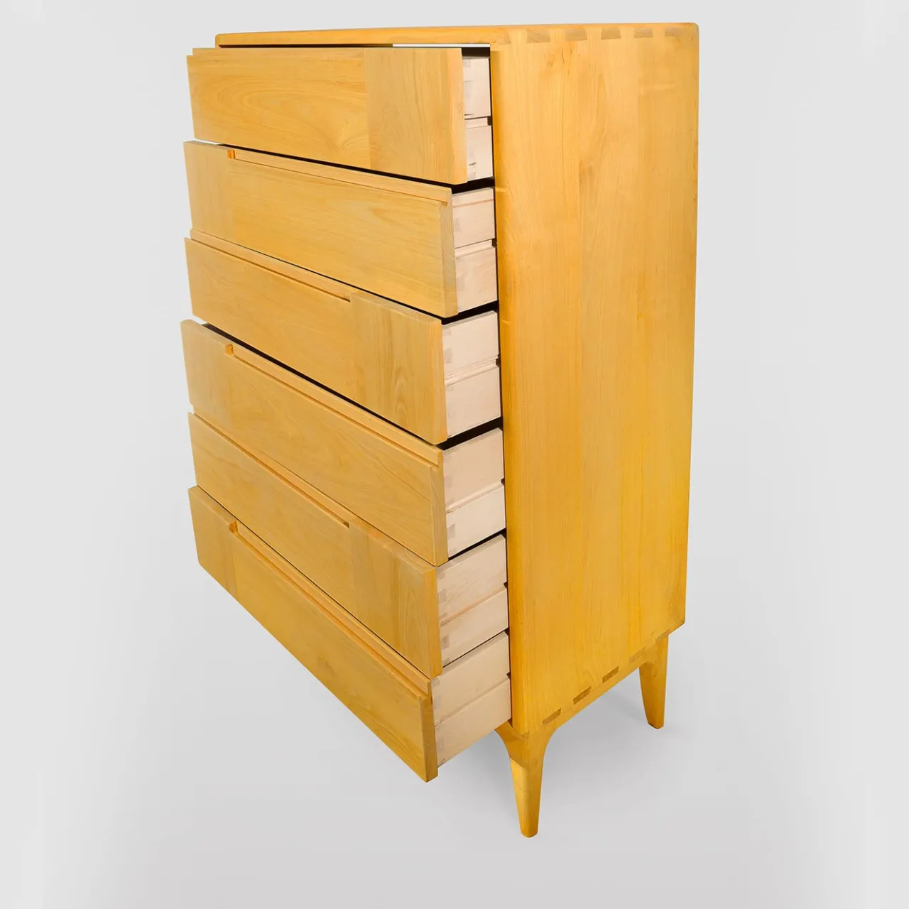 Vivace e sofisticato, questo comò in stile scandinavo sarà un’aggiunta singolare a un interno contemporaneo. Realizzato a mano in castagno massiccio, presenta sei cassetti dalle linee orizzontali e verticali che creano una pratica scanalatura che funge da maniglia. Internamente è realizzato in faggio massiccio e poggia su piedi corti e sottili. Colorato in una vivace tonalità gialla e lucidato con lacche all’acqua. Personalizzabile su richiesta al Concierge.