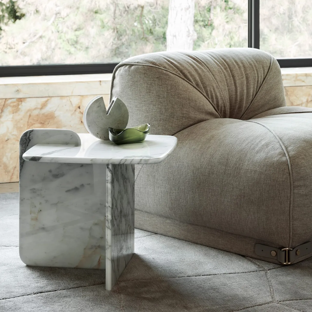 Il comodino Cards è caratterizzato da un design scultoreo ispirato a un castello di carte, che unisce funzionalità e forma espressiva. La sua struttura presenta bordi arrotondati e piani intersecanti che creano interesse visivo da ogni angolazione. La giustapposizione di superfici in marmo liscio esalta l’interazione dinamica degli elementi. Ideale come comodino o tavolino, funge da raffinato accento architettonico negli spazi abitativi contemporanei.