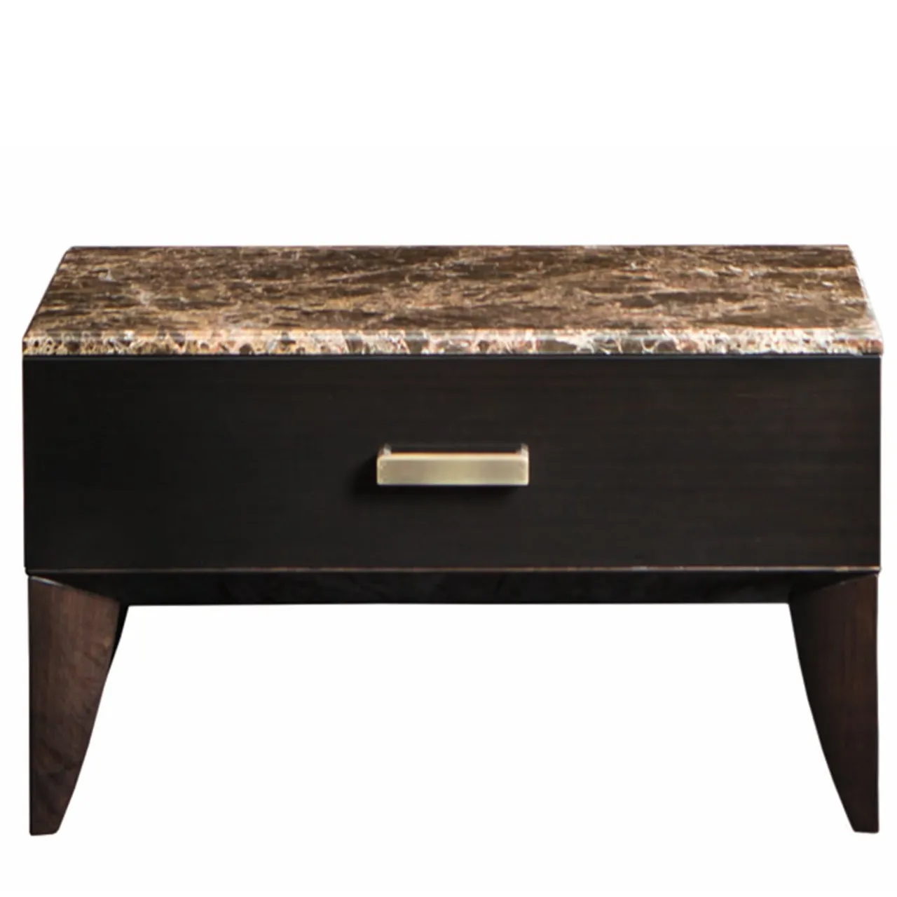 Per completare l’arredamento della camera da letto con stile e raffinatezza, il tavolino Dante è realizzato in compensato con impiallacciatura in noce scuro con finitura lucida spazzolata. Con cassetti foderati su morbide guide metalliche e maniglie in ottone con finitura in ottone brunito, questo elegante accessorio è completato da un elegante piano in marmo. Qui in ebano, con piano in marmo calacatta oro (CAT F).