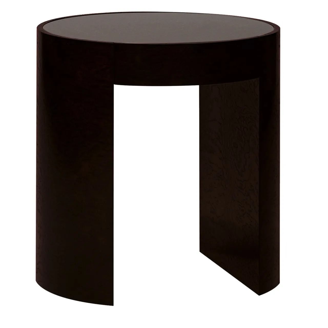 Questo comodino riprende la classica forma a ponte di Armani/Casa, introducendo una sezione circolare. Il piano è rivestito in tessuto tecnico Parma e la struttura è in rovere marrone. Per ulteriori informazioni, rivolgersi al Concierge.