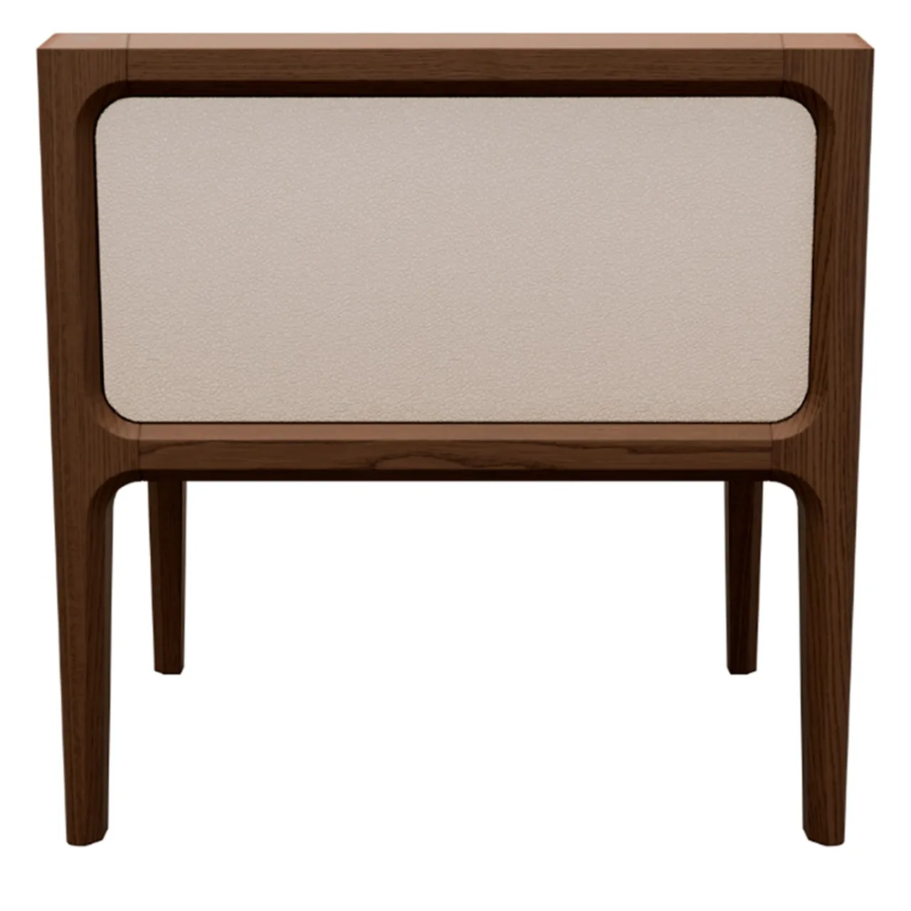 Definito da una squisita lavorazione artigianale, questo comodino in frassino con cassetto push-and-pull è una testimonianza di raffinata eleganza. Disegnato da Libero Rutilo, presenta un frontale del cassetto rivestito in pelle, personalizzabile su richiesta con il legno. Il piano in legno può essere personalizzato con inserti in ceramica o vetro, offrendo versatilità e raffinatezza a qualsiasi spazio interno. Contattare il Concierge per le opzioni di personalizzazione.
