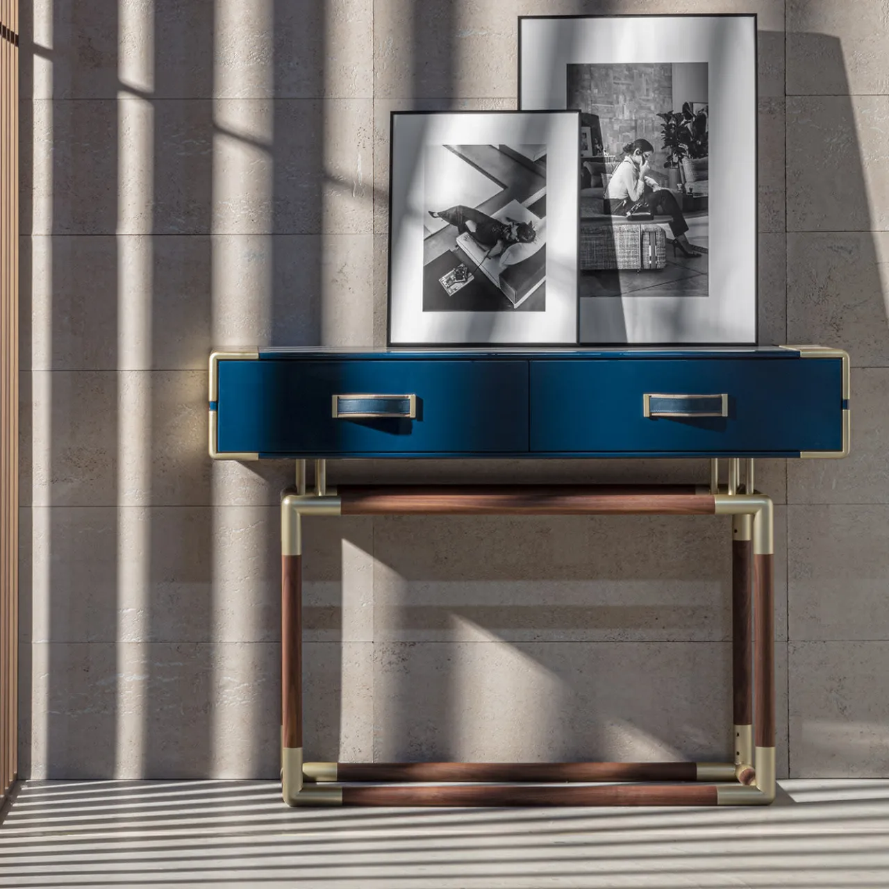 La linea Anzio, composta da credenza, consolle, tavolo e divano, si ispira all’immagine del viaggiatore dandy. Le forme arrotondate ricordano le cassapanche vintage della Belle Époque, mentre gli accostamenti cromatici audaci e le personalizzazioni senza tempo costituiscono i tratti distintivi della collezione. Una linea dalla forte personalità, con la quale distinguersi ed esprimere la propria personalità.