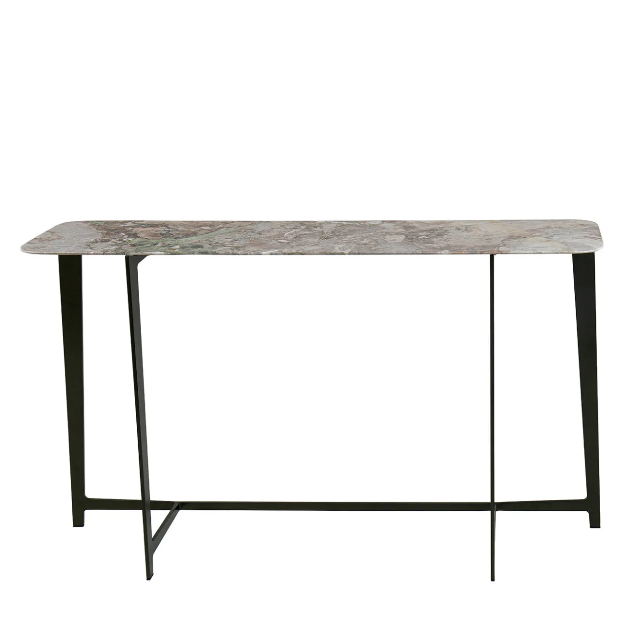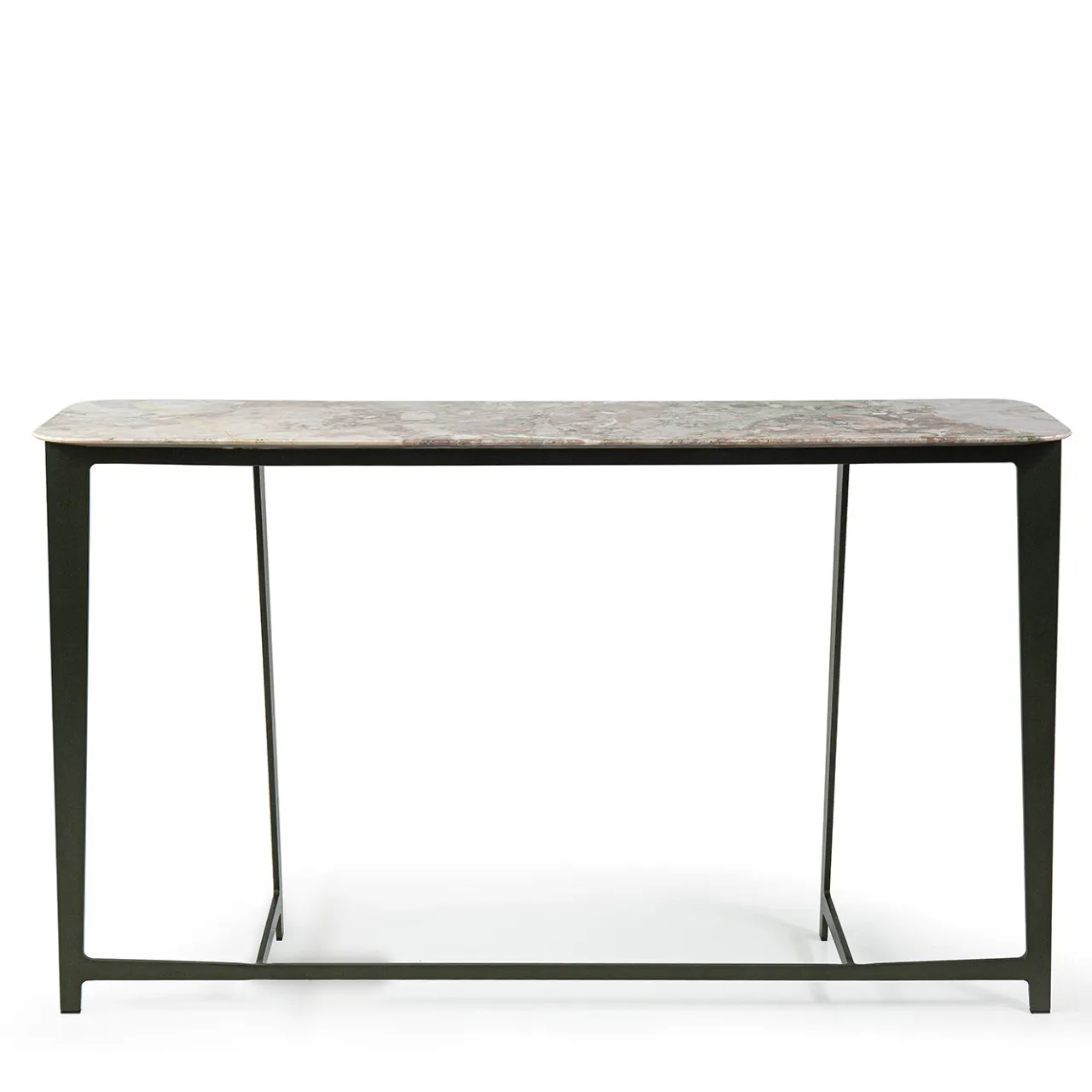 BSeries è una collezione compatta di superfici versatili—tavoli console, scrivanie e tavolini—unite dalla geometria audace delle loro gambe metalliche, abbinate a grandi ma sottili piani in marmo. La base in metallo é dotata di piedini protettivi in plastica. Mostrato: finitura in metallo Y22OUI Verde Samoa, piano in marmo Iris Heaven. Progettato da Carlo Bimbi. Finiture personalizzate e certificazioni sono disponibili tramite Concierge.