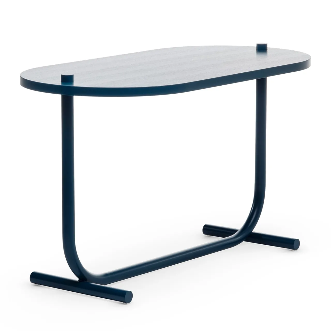 Un’aggiunta squisita alle case moderne e contemporanee che desiderano evocare l’intensità delle profondità oceaniche nei loro corridoi o ingressi, questa console è un esercizio di curve dolci. Il singolo elemento cilindrico in acciaio verniciato a polvere blu oceano, piegato per essere costantemente sollevato dai piedi cilindrici abbinati, attraversa il piano laccato opaco in frassino vicino ai lati arrotondati.