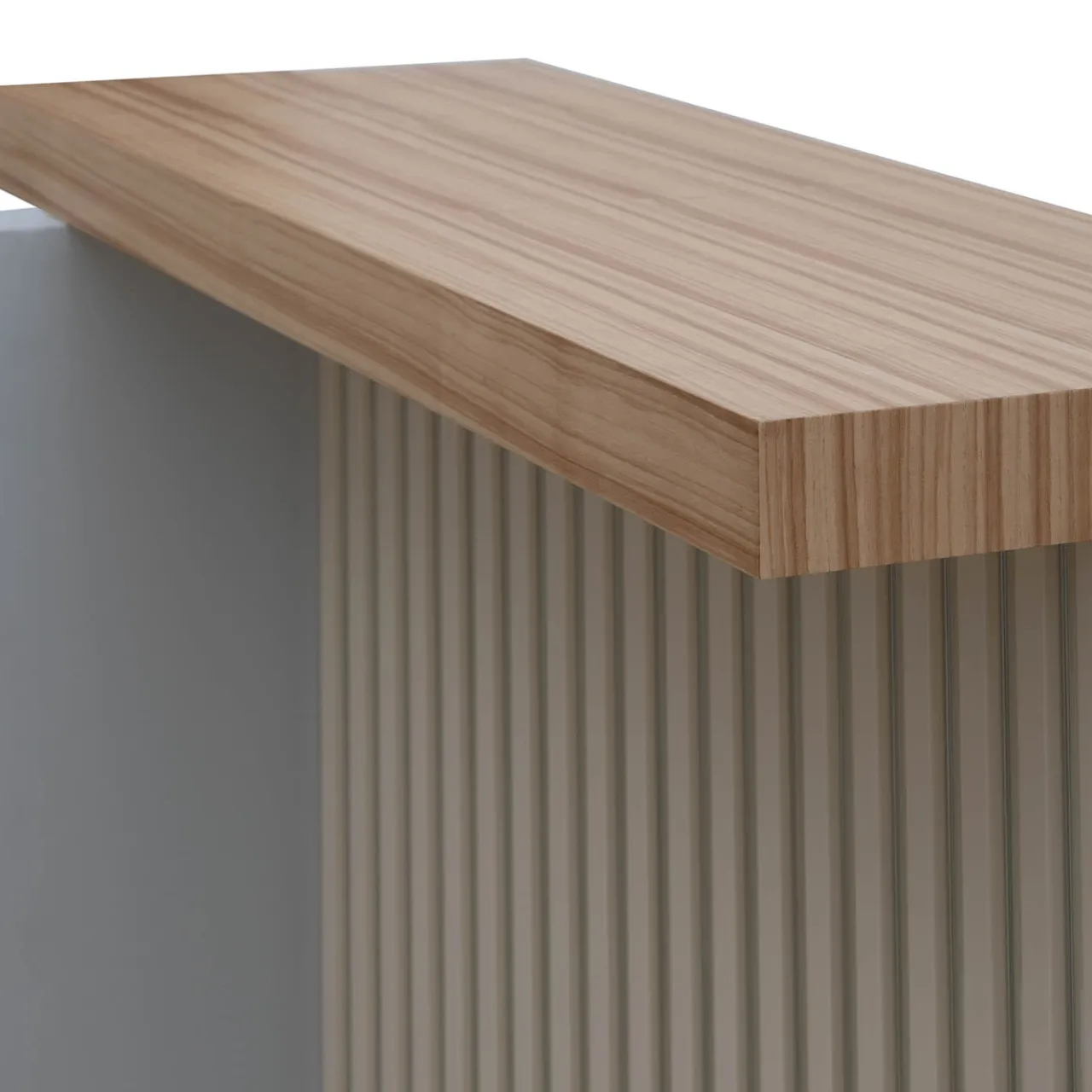 Questa consolle, che emana una raffinatezza senza tempo, si distingue per l’elegante inserto laterale in ottone satinato e per le lamelle a specchio sulla parte anteriore, che catturano e riflettono l’ambiente circostante. Abilmente realizzata in legno laccato e arricchita da un piano in frassino, sarà un accento versatile per l’ingresso, il corridoio o l’arredamento del soggiorno. Per ulteriori dettagli, contattare il Concierge.