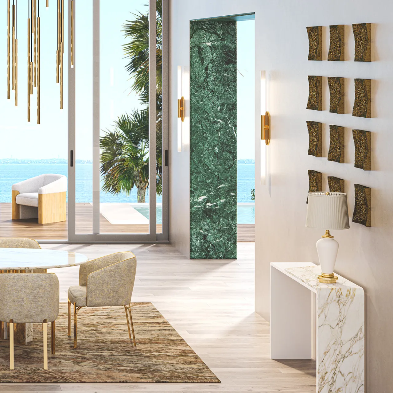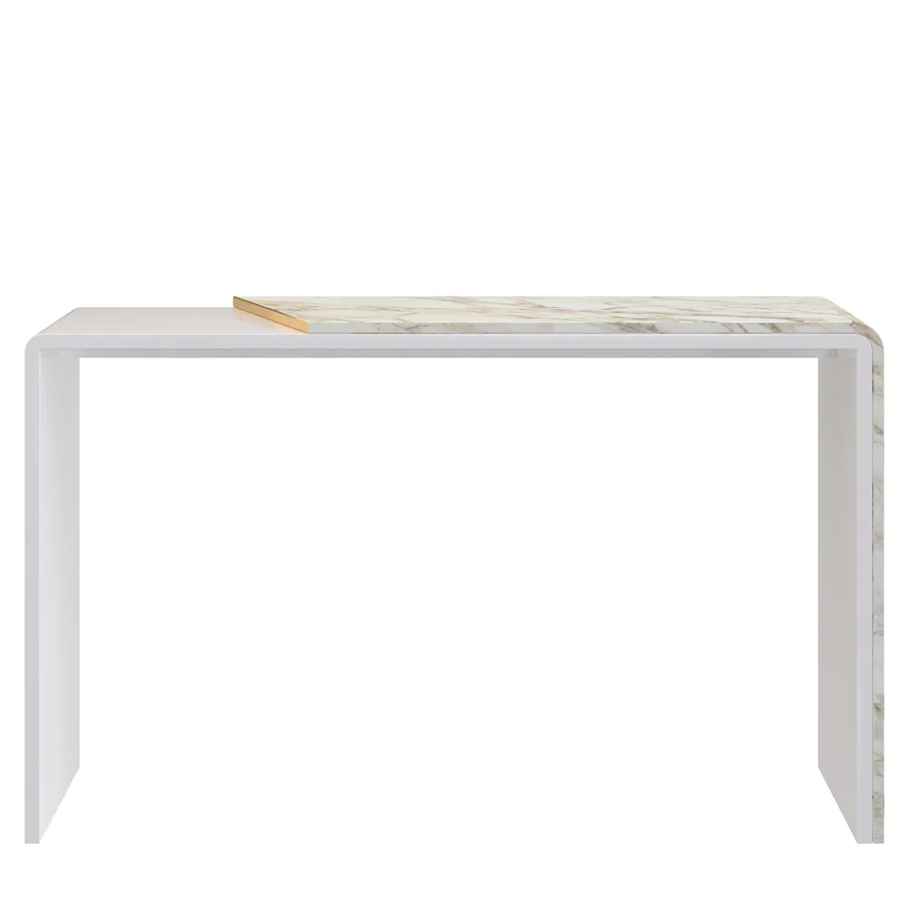 Una console con una struttura in legno elegante e slanciata, caratterizzata da un top laccato distintivo che imita l’aspetto elegante del marmo bianco. Questo pezzo versatile migliora l’organizzazione degli spazi offrendo una superficie pratica per oggetti decorativi o beni di prima necessità, mentre le sue linee pulite e i dettagli sofisticati contribuiscono a un’atmosfera raffinata e contemporanea in qualsiasi ambiente abitativo.