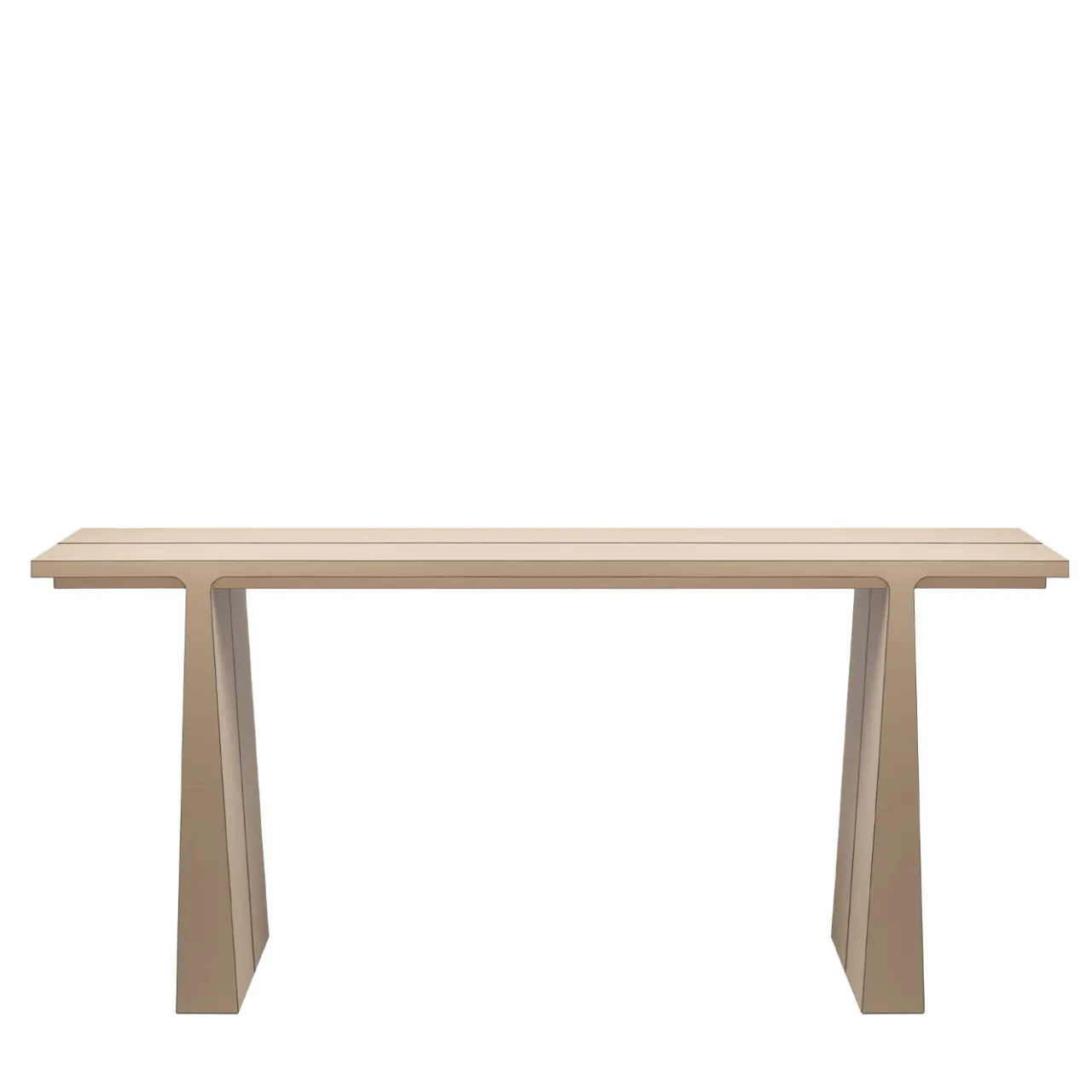 Disegnata da Stéphane Parmentier, questa notevole consolle farà da sfondo a una composizione floreale, a una collezione di oggetti decorativi o a un apparecchio di illuminazione unico, grazie alla sua silhouette semplice ma elegante. Interamente rivestito in morbida pelle beige, il piano rettangolare poggia su due imponenti gambe dalla silhouette leggermente svasata. Il nome della collezione La Linea (“la linea” in inglese) descrive la linea distintiva che segna il centro di ogni pezzo, seguendo l’intera geometria del design.