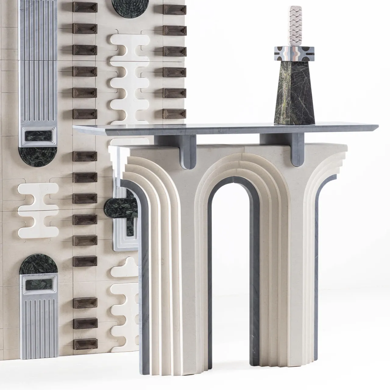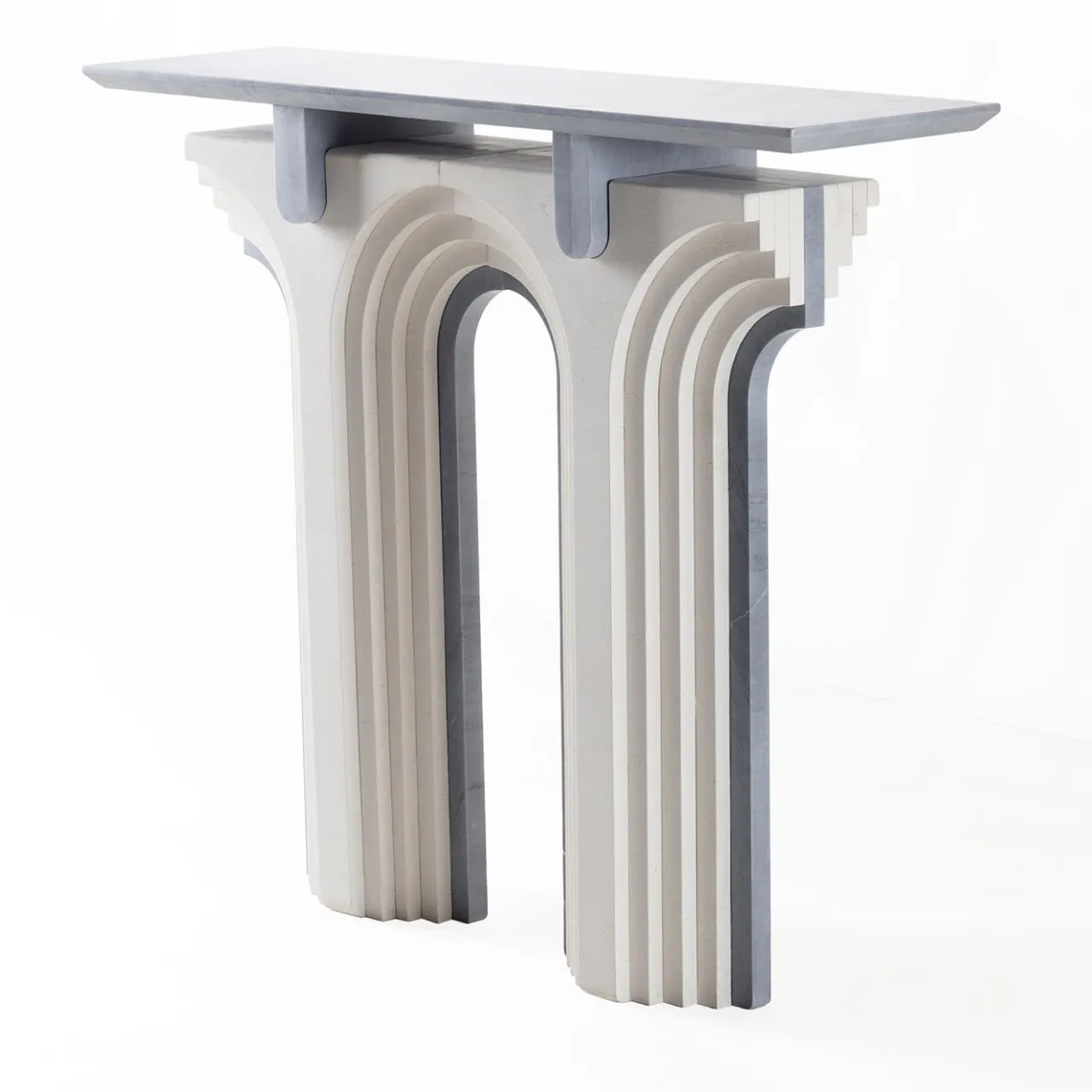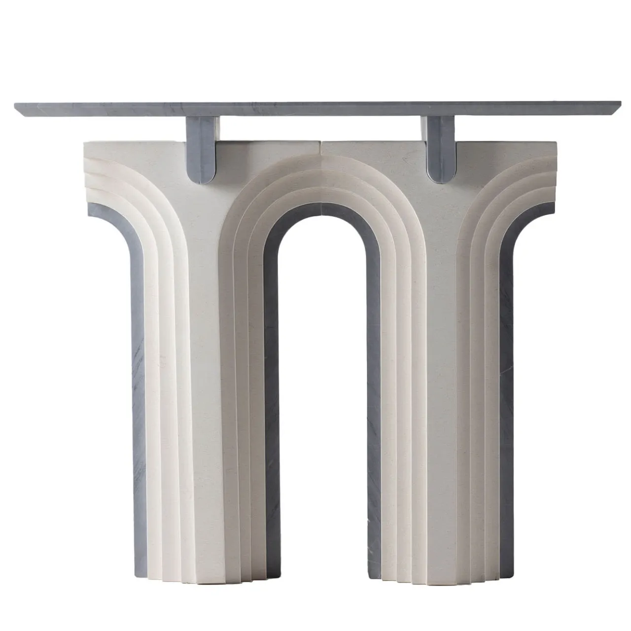La consolle in marmo Koilon si ispira alle forme senza tempo dell’antica Grecia, rendendo omaggio alle iconiche gradinate del teatro greco. La sua silhouette aggraziata, simile a un gradino, evoca la grandezza dell’architettura teatrale, rappresentando i livelli di posti a sedere, mentre la colonna, le gambe rendono omaggio al design classico. Realizzato in marmo con delicate venature bianche e grigie, Koilon ha un’aura di raffinatezza e atemporalità. Combina bellezza e simmetria, incarnando l’arte greca.