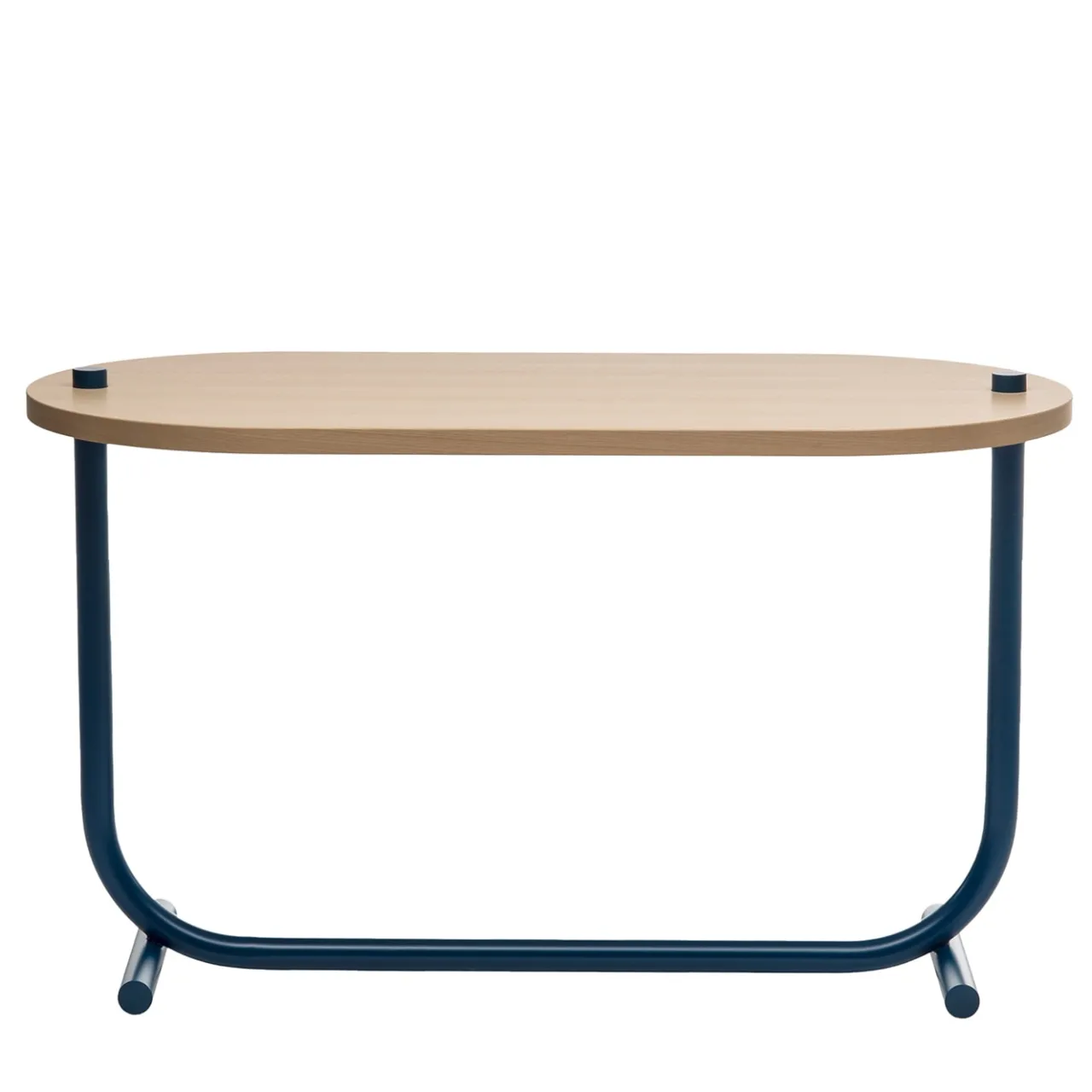 Splendida nella sua semplicità, questa consolle di Sovrappensiero Design Studio reimmagina il minimalismo contemporaneo in una forma più morbida e ricca di dolci curve. Il piano allungato impiallacciato in frassino naturale lucidato viene trafitto e sostenuto da un unico elemento cilindrico curvato che, insieme a una coppia di piedini cilindrici, sfoggia una verniciatura a polvere blu oceano.