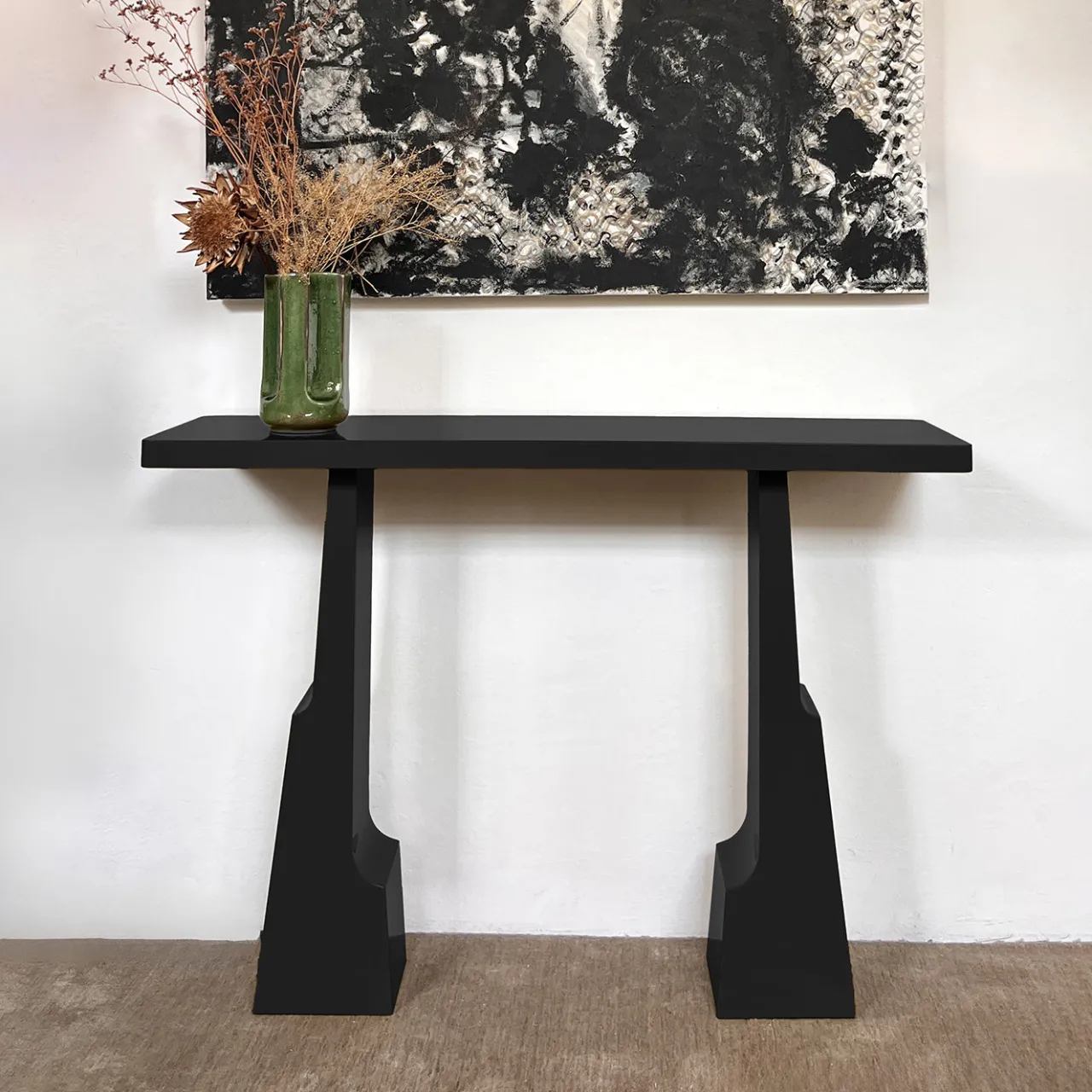 La console in legno laccato nero Emily presenta una silhouette elegante e slanciata con dimensioni che creano un impatto visivo straordinario. Realizzata in legno laccato solido, è disponibile sia nelle finiture lucide che opache. La console si adatta a vari ambienti, dai soggiorni agli ingressi, e può essere personalizzata con qualsiasi colore della gamma RAL per abbinarsi perfettamente ai progetti di design individuali.