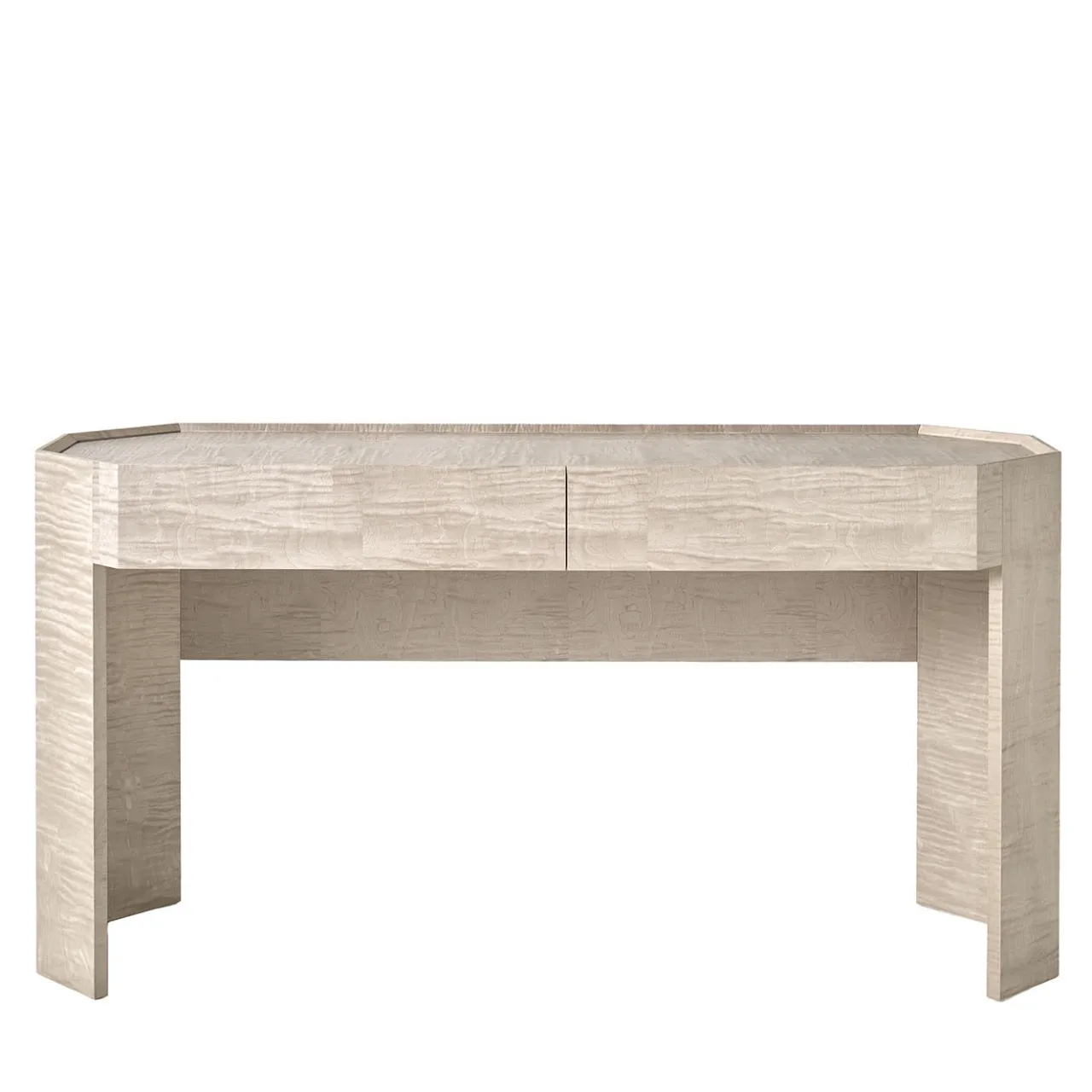 Tanto rigorosa nei suoi profili geometrici quanto intrigante nella sua venatura ondulata, questa esclusiva consolle realizzata in sicomoro figurato è un complemento superbo per gli interni contemporanei. La sensazione setosa data dalle venature contrasta con gli spigoli vivi, che tracciano una silhouette in cui ogni dettaglio è il risultato di una paziente fase di affinamento manuale.