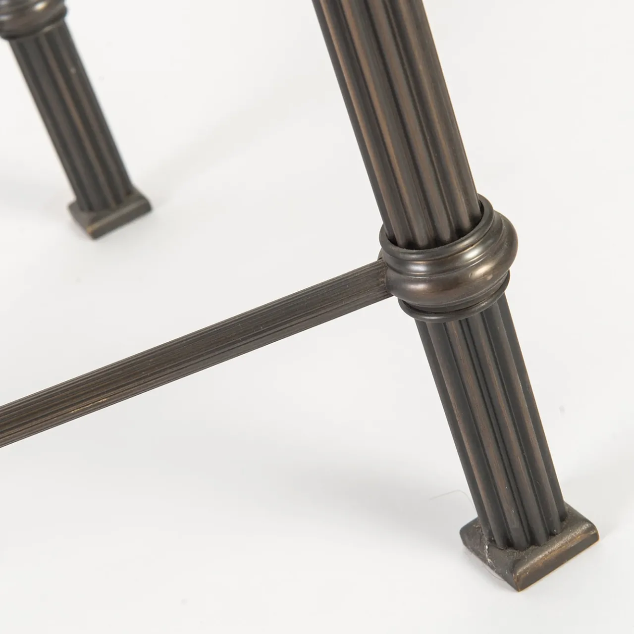 La consolle “Onde” è un affascinante pezzo d’arredamento contemporaneo. La sua struttura è realizzata in ottone scuro brunito a coste, che crea un effetto dinamico e increspato. Il piano in rovere massiccio presenta un inserto a specchio anticato che aggiunge un tocco di eleganza e profondità.