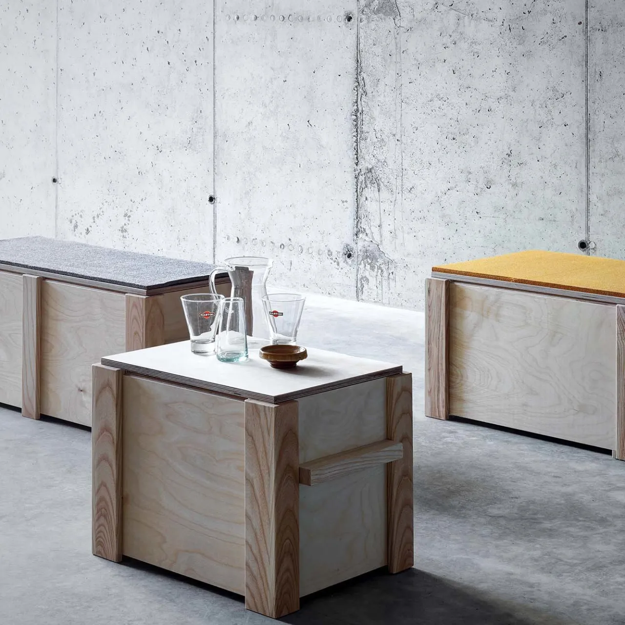 Questa moderna interpretazione della tradizionale cassapanca è disegnata da CCRZ ed è un complemento versatile e prezioso per una casa moderna o rustica. Realizzata in multistrato di betulla con fianchi in frassino, la silhouette lineare e rigorosa di questo contenitore può diventare anche una seduta accanto al tavolo da pranzo, un tavolino in soggiorno o un comodino in camera da letto. Un cuscino in feltro, se utilizzato come seduta, è disponibile su richiesta. Le altre dimensioni sono (in cm): 50 x 50 x H38, 90 x 38 x H38, 90 x 50 x H38, 130 x 38 x H38 e 130 x 50 x H38. Chiedete al Concierge le opzioni e i prezzi.