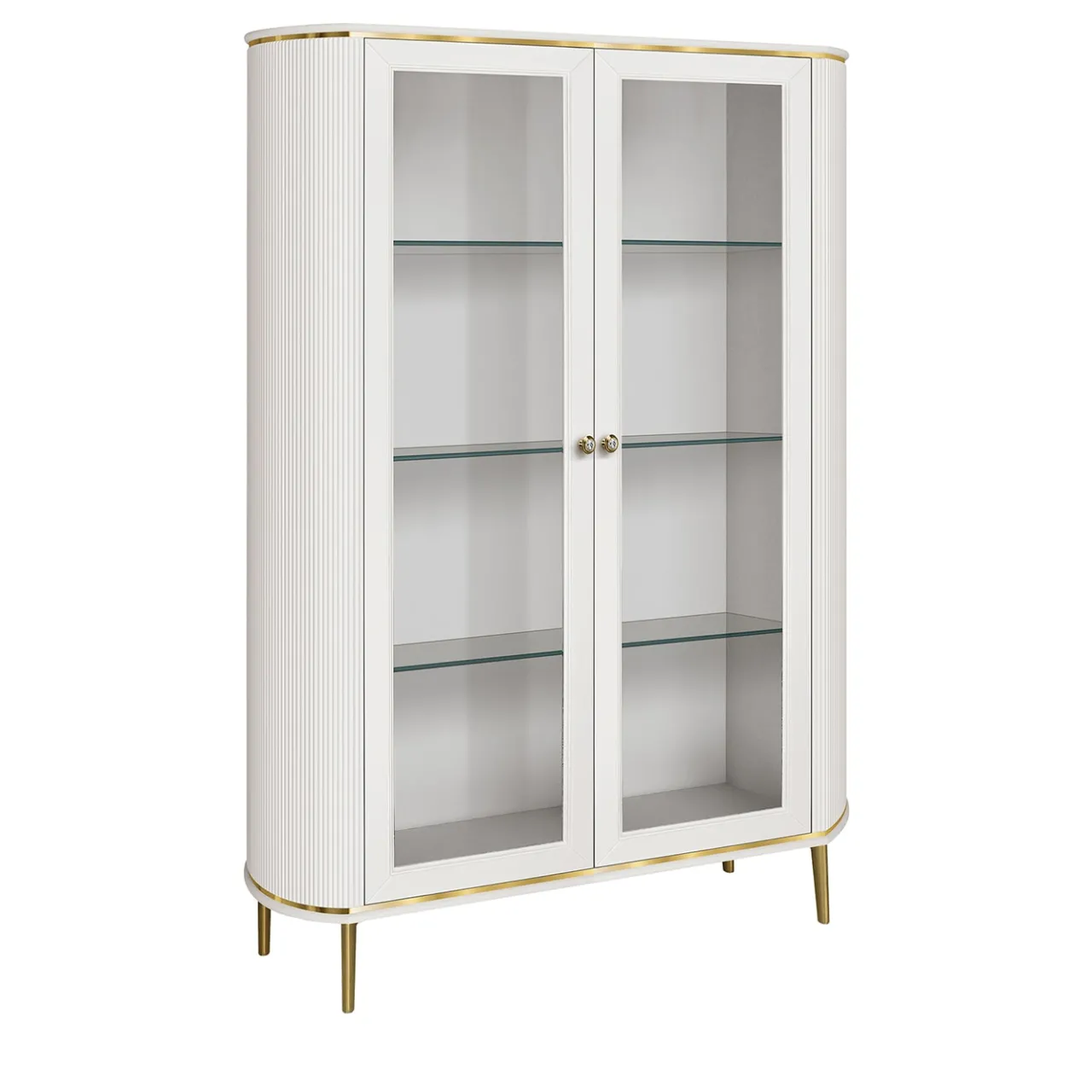 Questo mobile in vetro a 2 ante coniuga perfettamente estetica moderna e funzionalità versatile. Rifinito in un elegante bianco e completato da piedini in metallo dorato, il mobile è dotato di spaziosi ripiani in vetro ideali per esporre decorazioni per la casa, opere d’arte o oggetti di uso quotidiano. Il suo design contemporaneo e i dettagli dorati lo rendono una scelta elegante per qualsiasi salotto, zona pranzo o ufficio, offrendo bellezza e praticità.